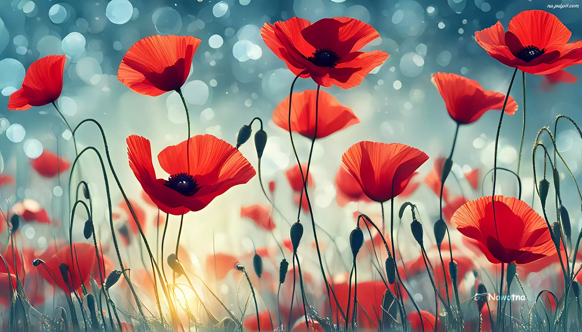 Tło, Czerwone, Kwiaty, Rozmyte, Maki, Grafika