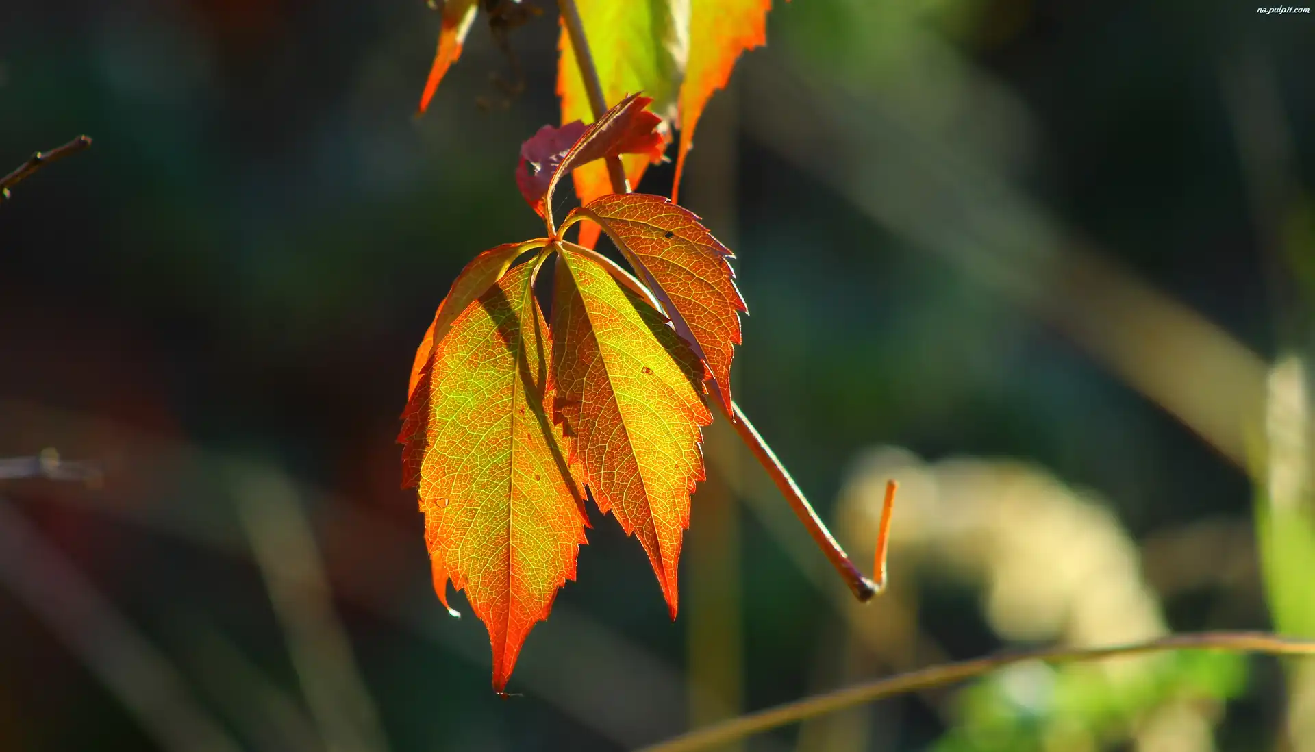 Rozmyte tło, Liść, Jesienny, Zbliżenie Na Pulpit