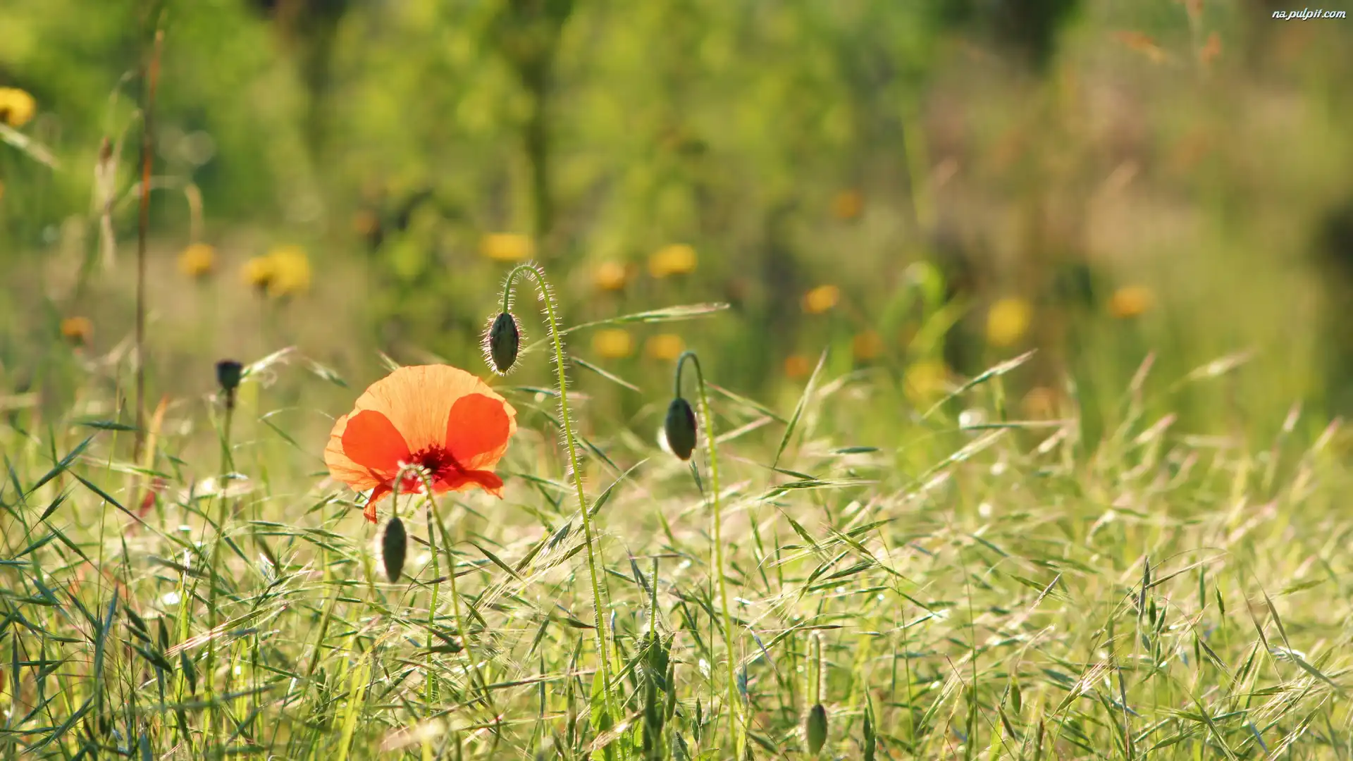 Rozmyte tło, Łąka, Mak, Kwitnący, Trawa Na Pulpit