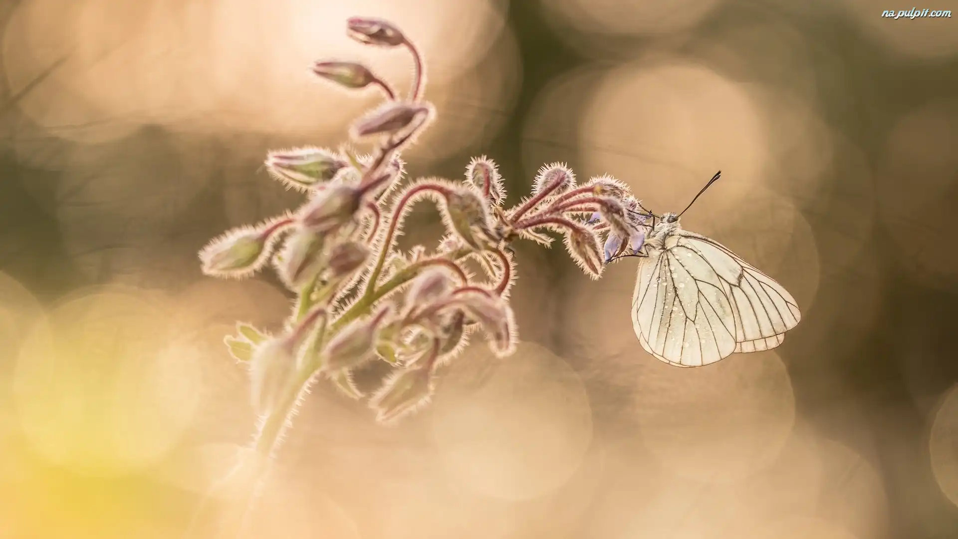 Rozmyte tło, Niestrzęp głogowiec, Motyl, Roślina Na Pulpit