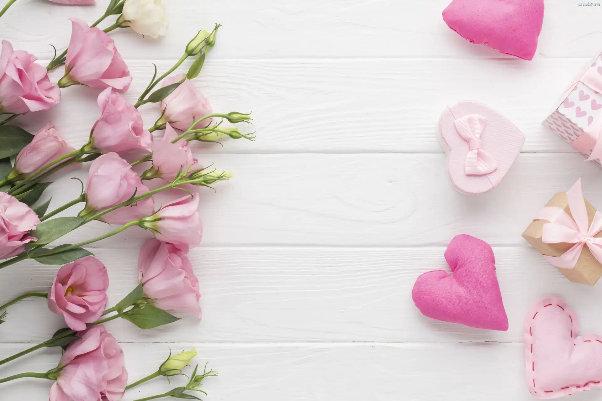 Różowa, Prezenty, Deski, Eustoma, Kwiaty, Serduszka