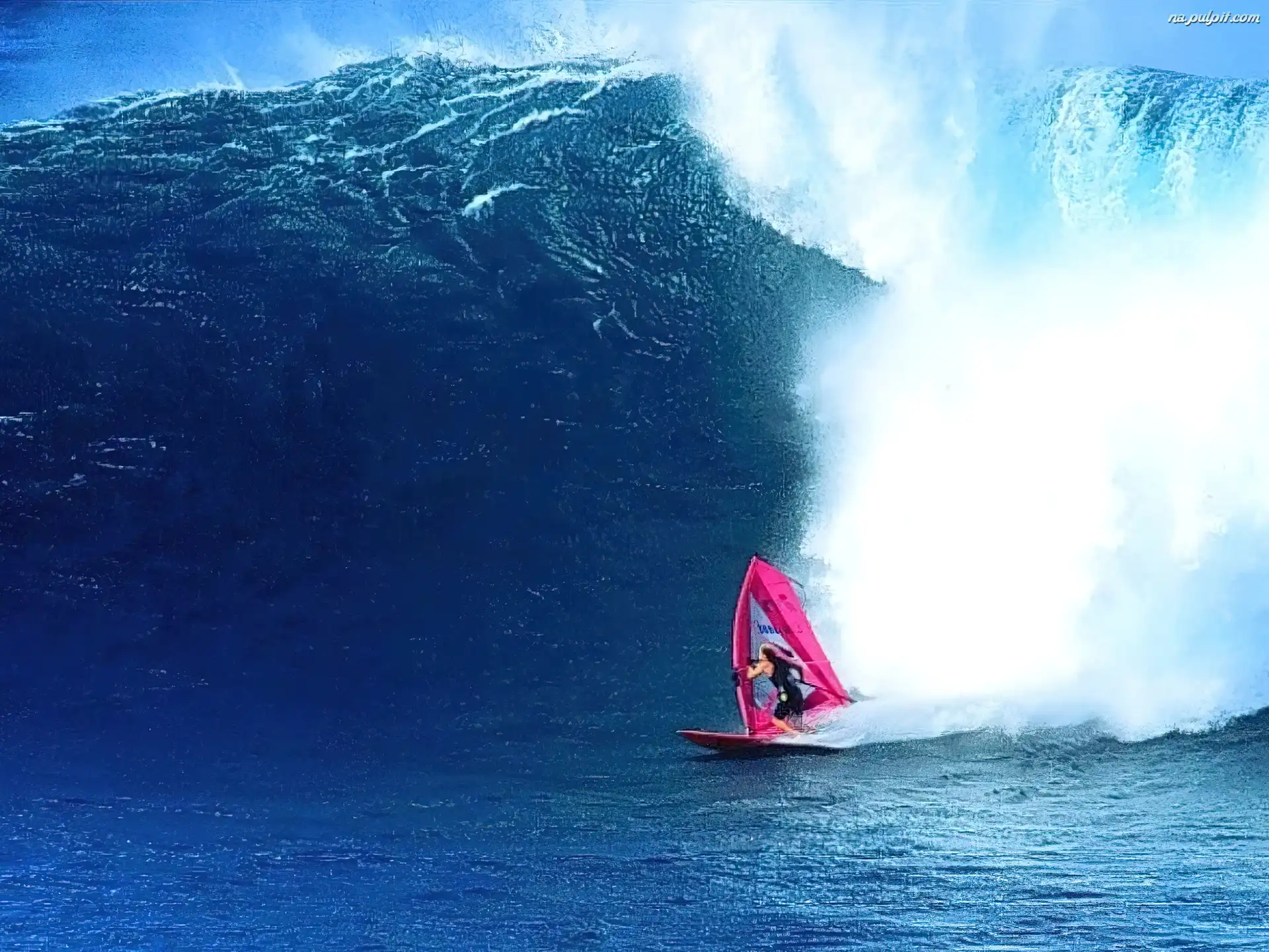 Windsurfing, różowa deska Na Pulpit