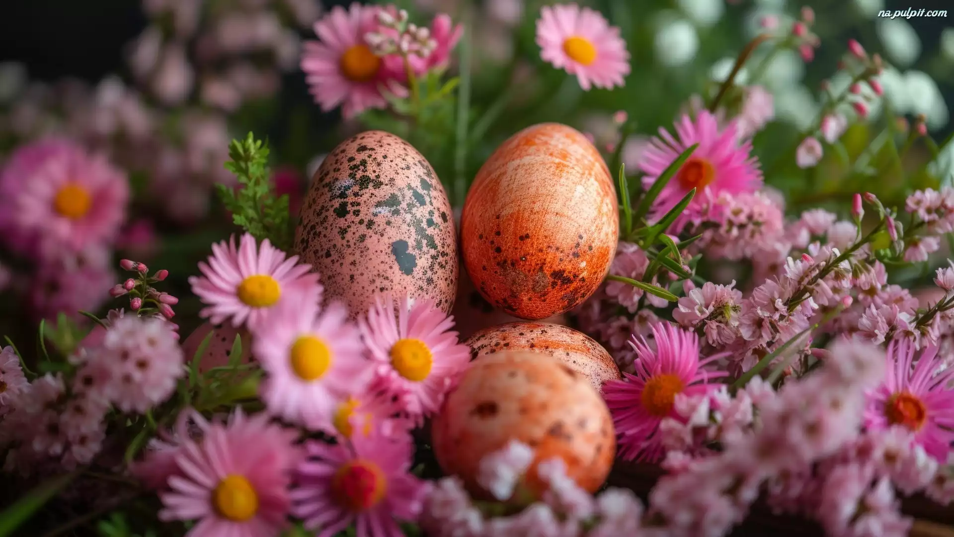 Kwiaty, Wielkanoc, Pisanki, Różowe, Kolorowe, Astry Na Pulpit