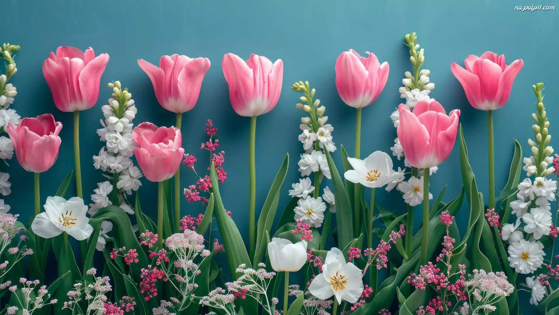 Tulipany, Różowe, Białe, Liście, Kwiaty Na Pulpit