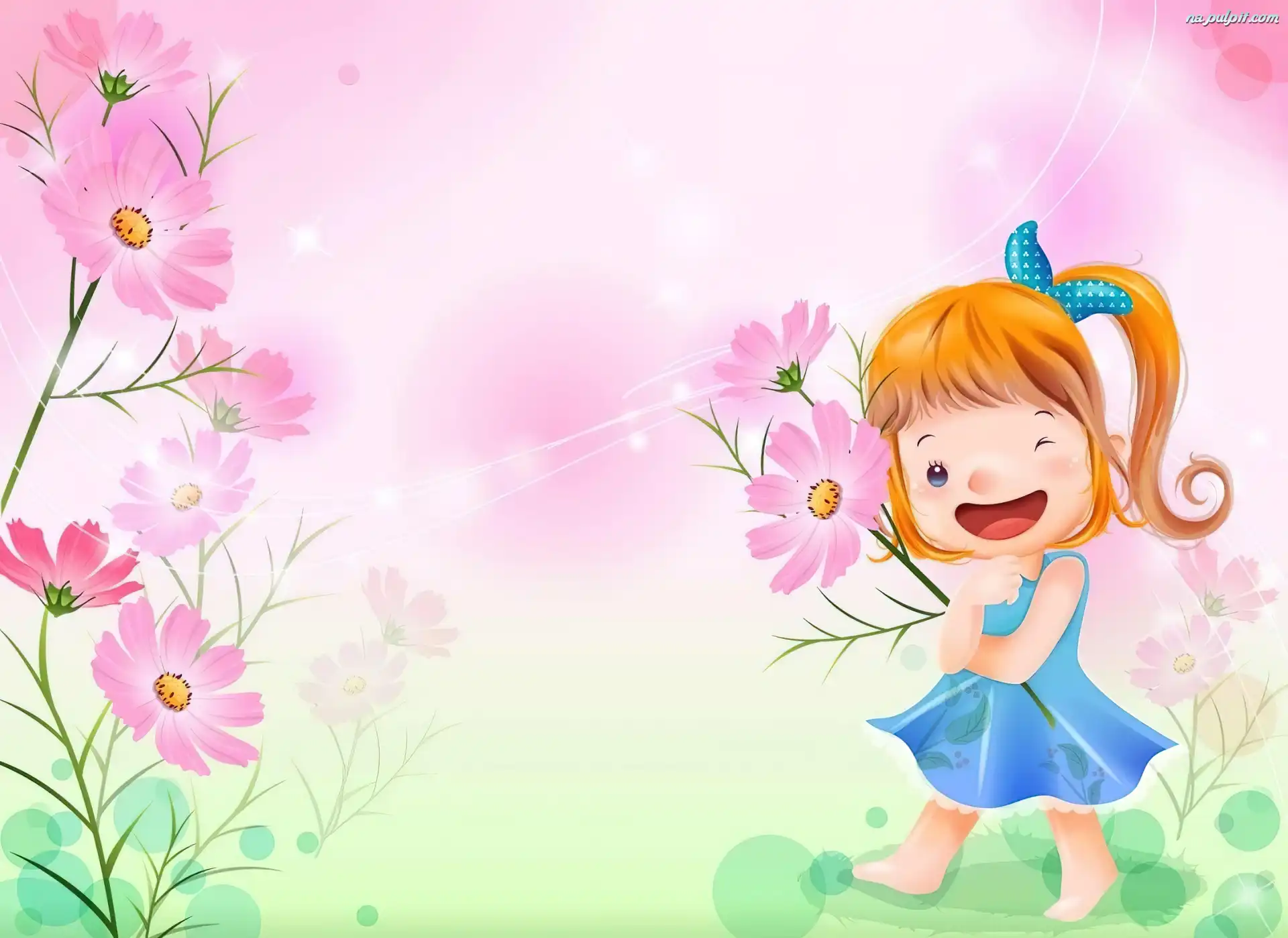Dziewczynka, Różowe, Kwiaty Na Pulpit