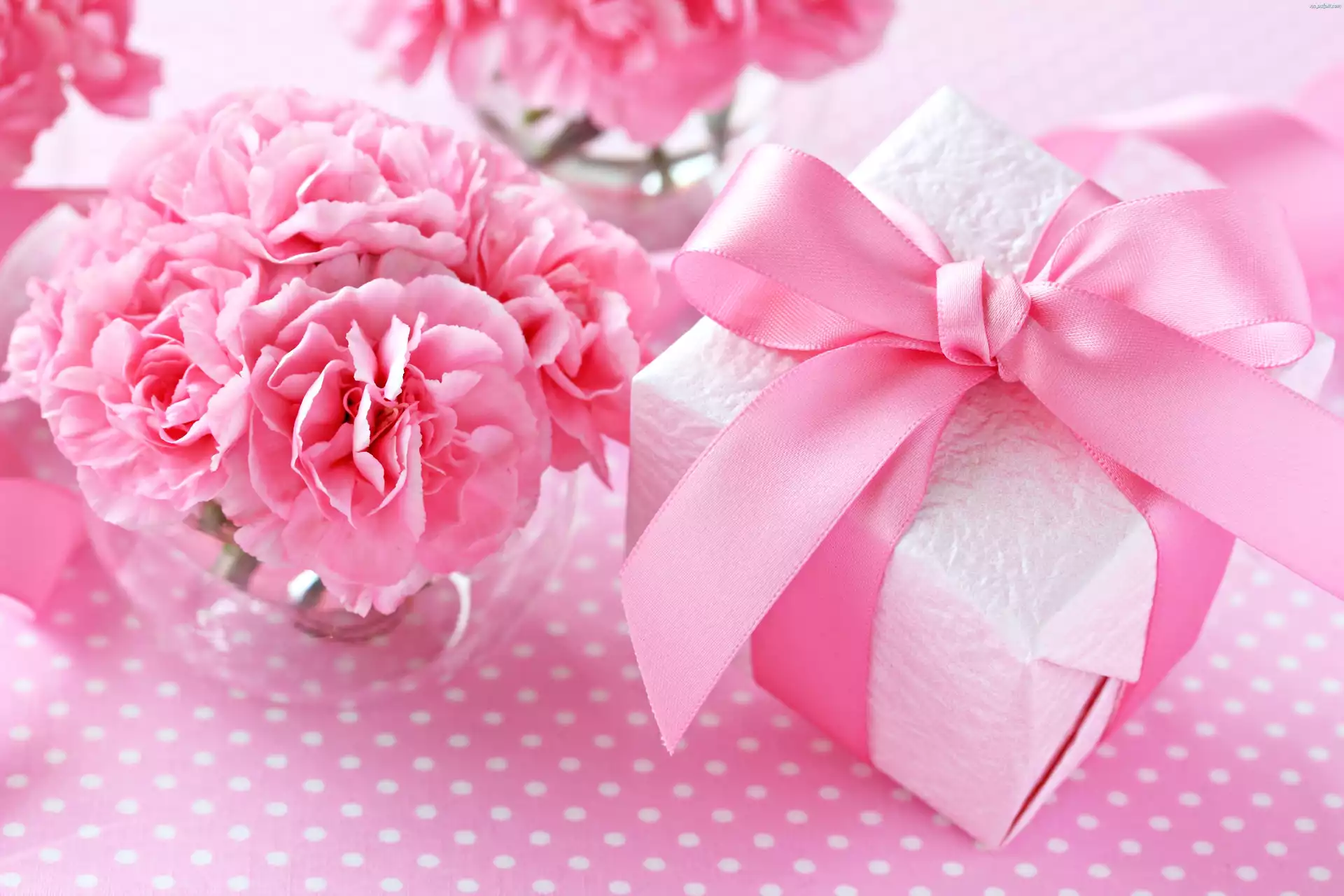Podziękowanie, Różowe, Urodziny, Prezent, Kwiaty, Gozdziki, Dzień Kobiet Na Pulpit