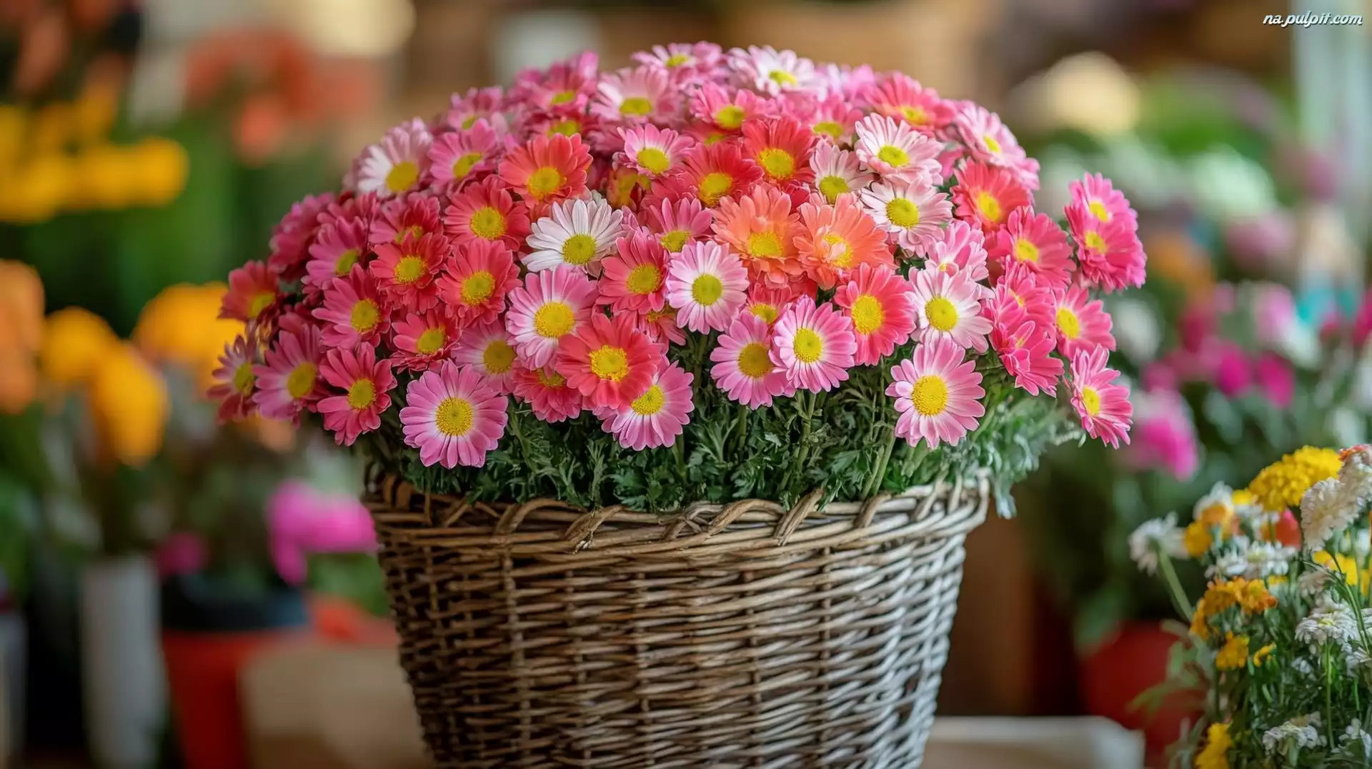 Różowe, Kwiaty, Koszyk Na Pulpit