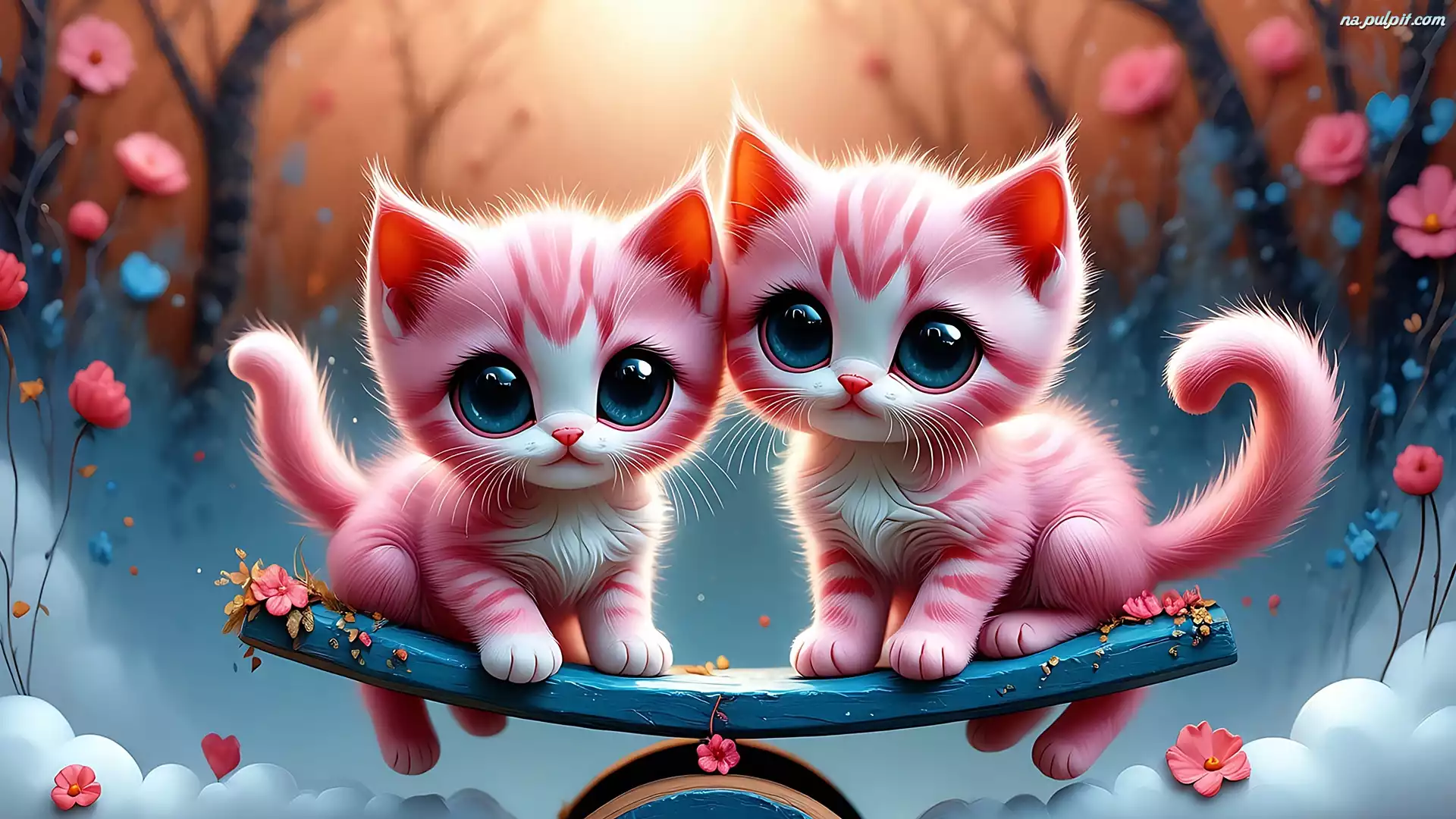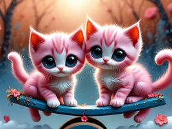Dwa, Różowe, Koty, Grafika AI Na Pulpit