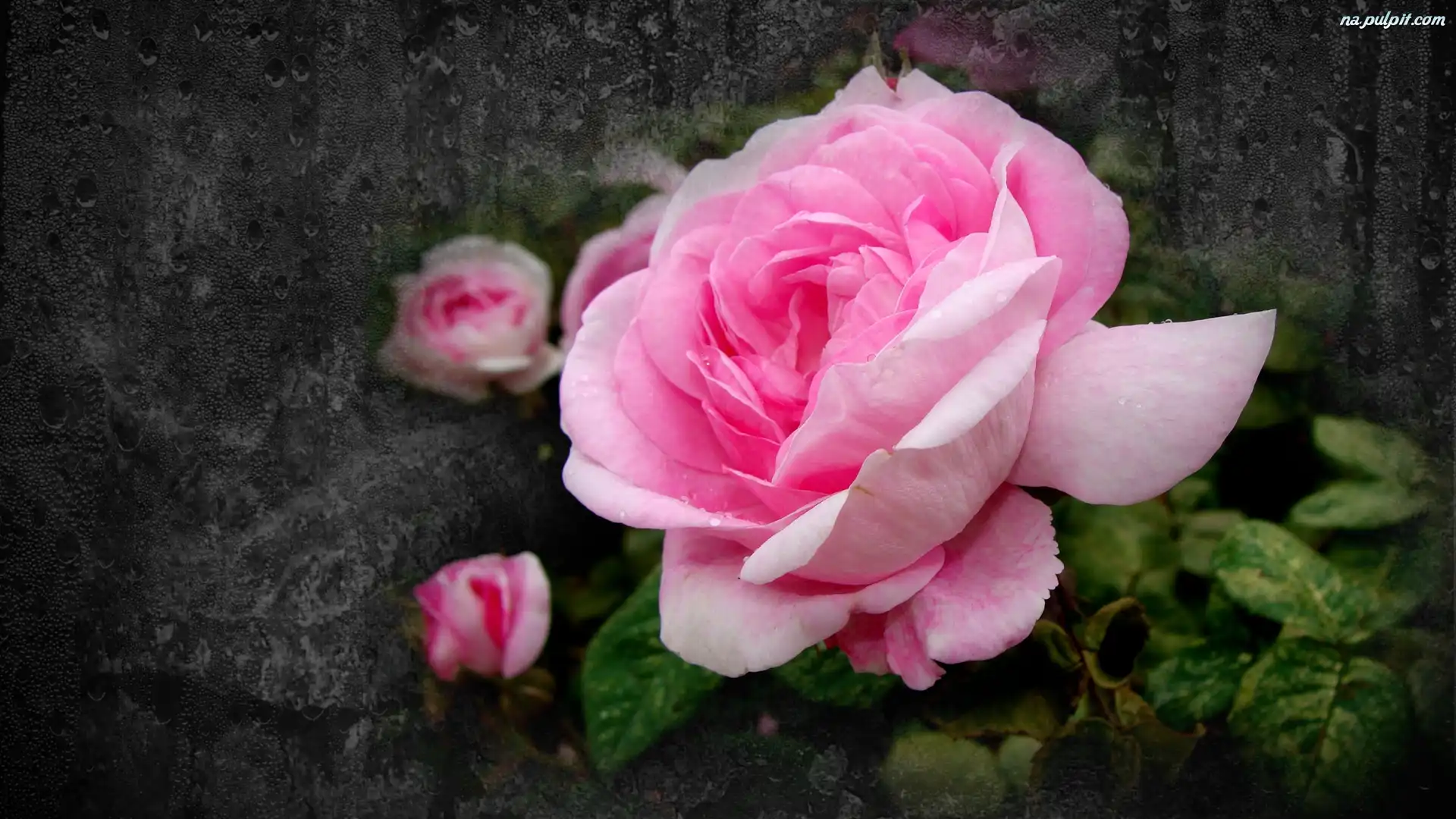 Mokra, Różowe, Róże, Szyba, Grafika, Liście, Kwiaty, Krople Na Pulpit