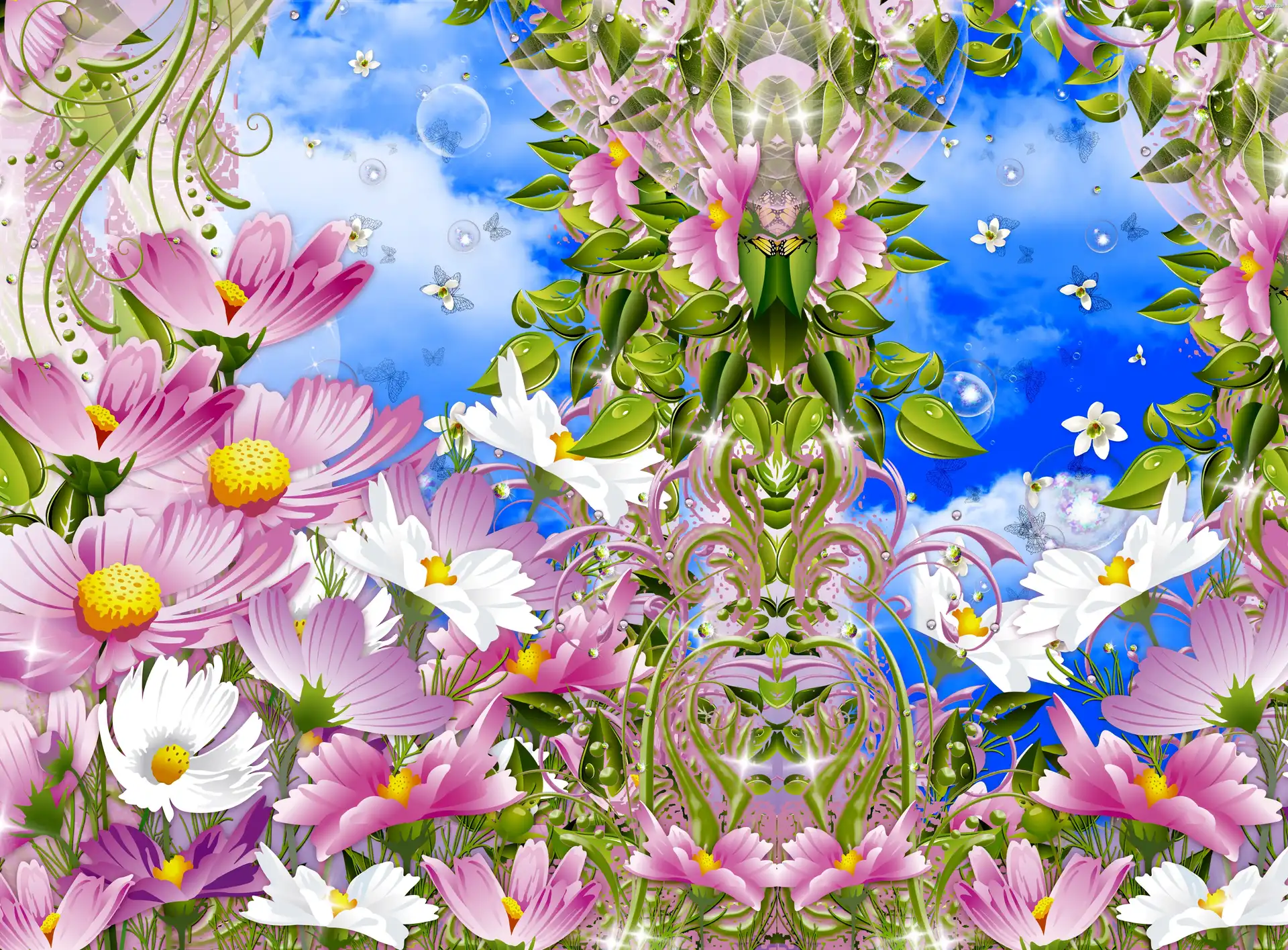 Kwiaty, Różowe, Białe