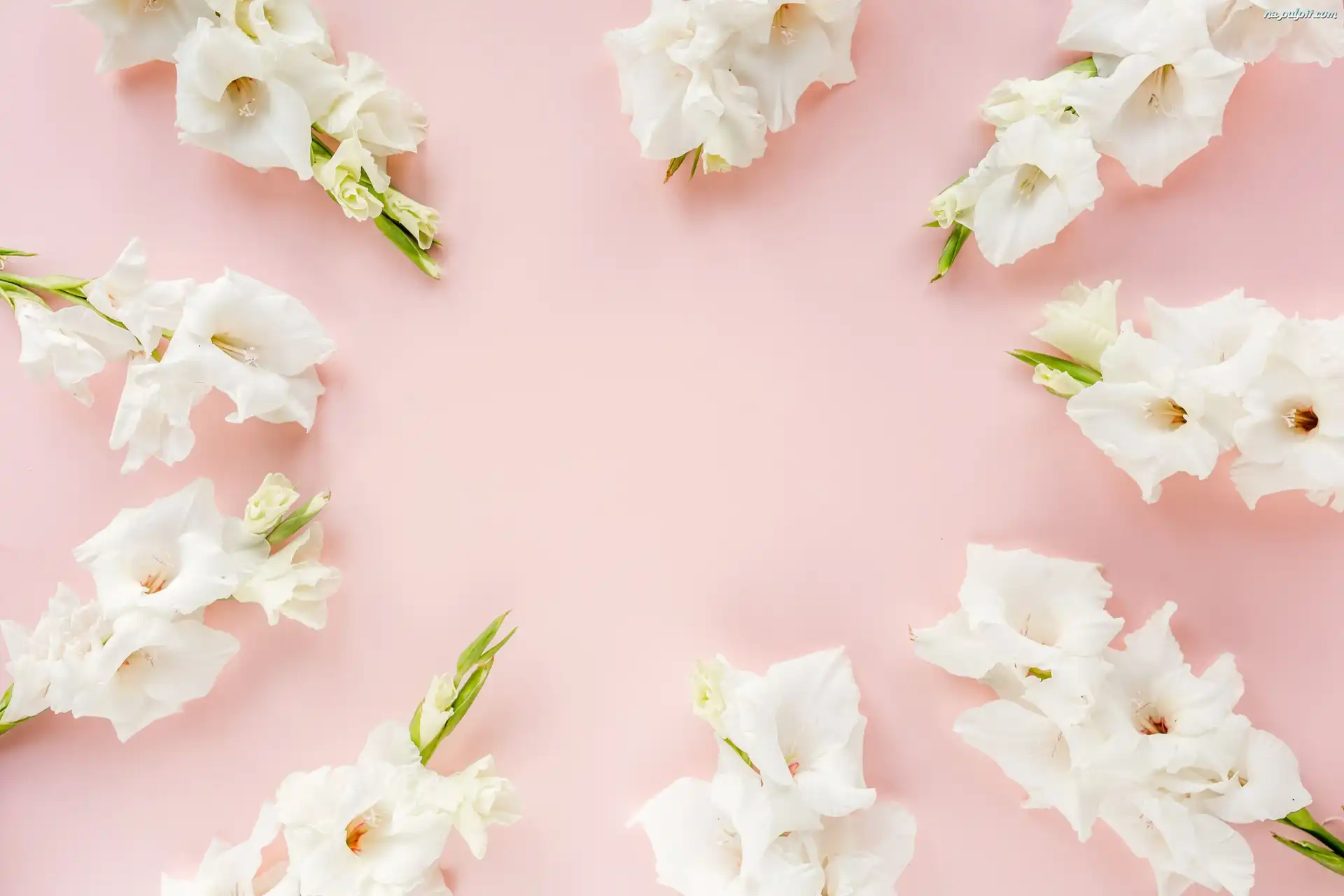 Różowe, Mieczyki, Białe, Kwiaty, Tło