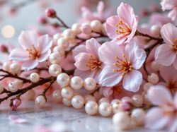 Perły, Różowe, Kwiaty, Korale, Gałązki