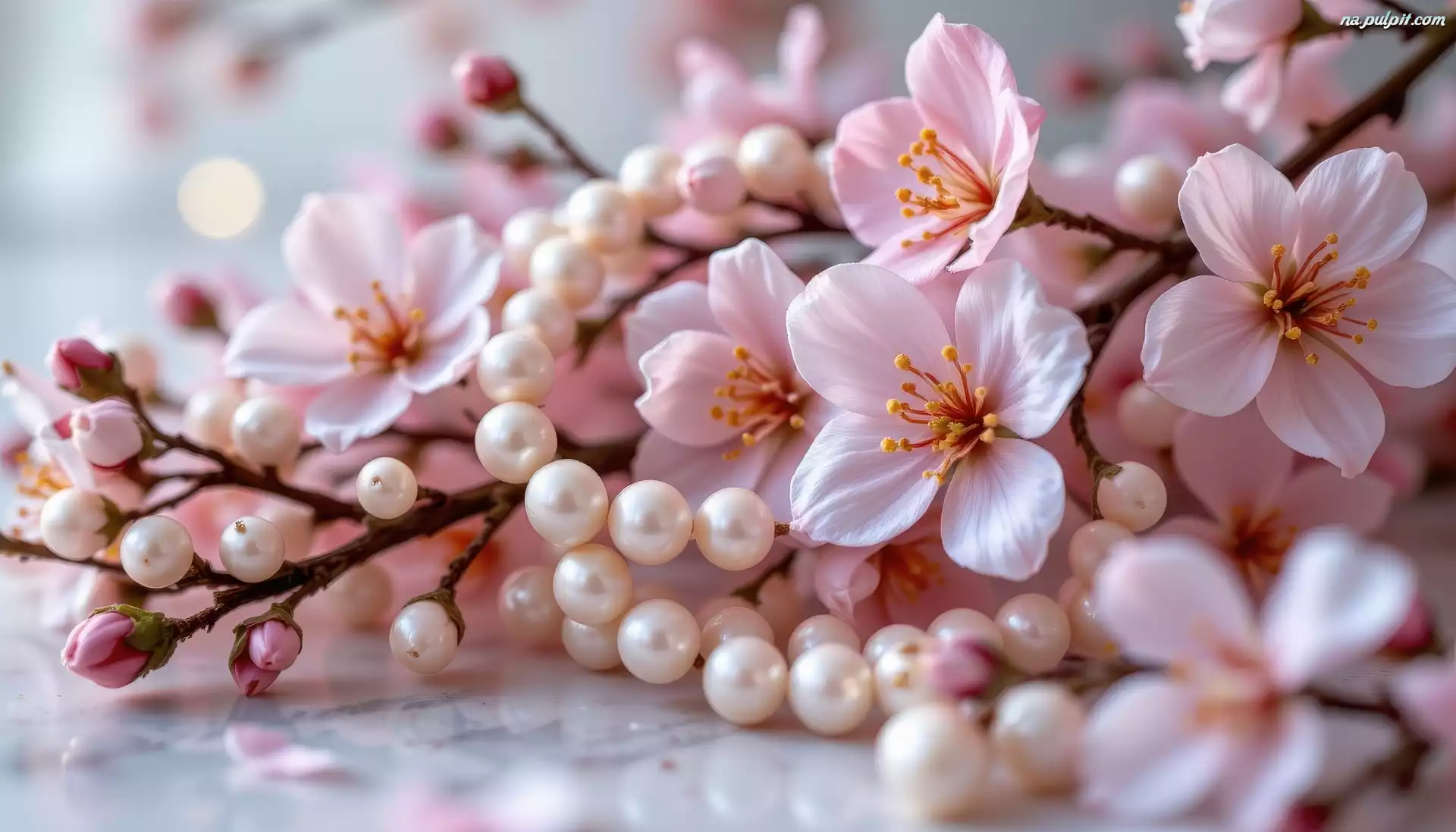 Perły, Różowe, Kwiaty, Korale, Gałązki Na Pulpit
