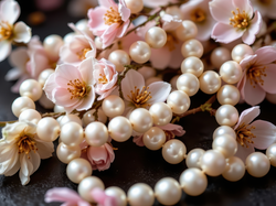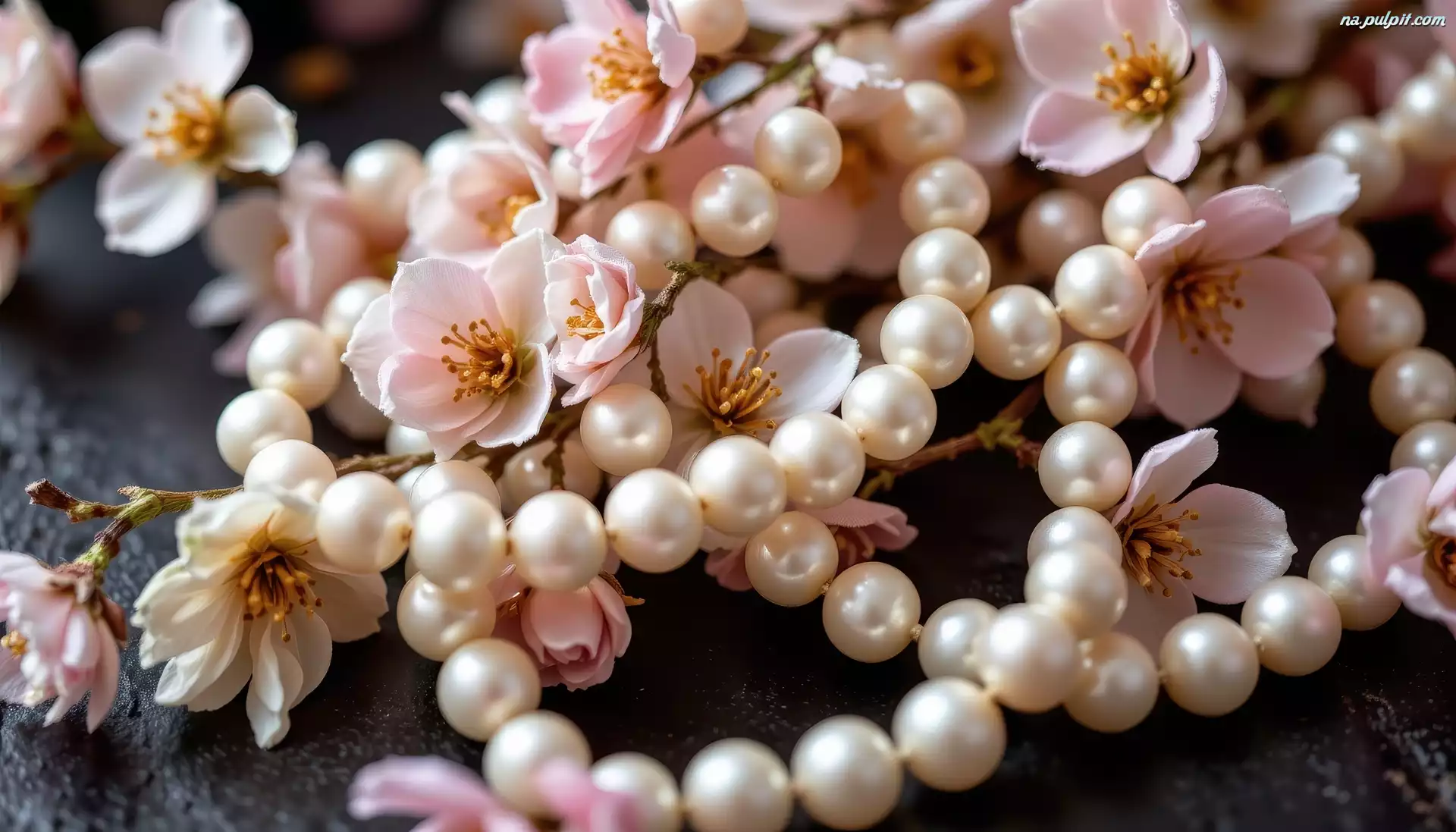 Korale, Różowe, Kwiaty, Perły, Gałązki