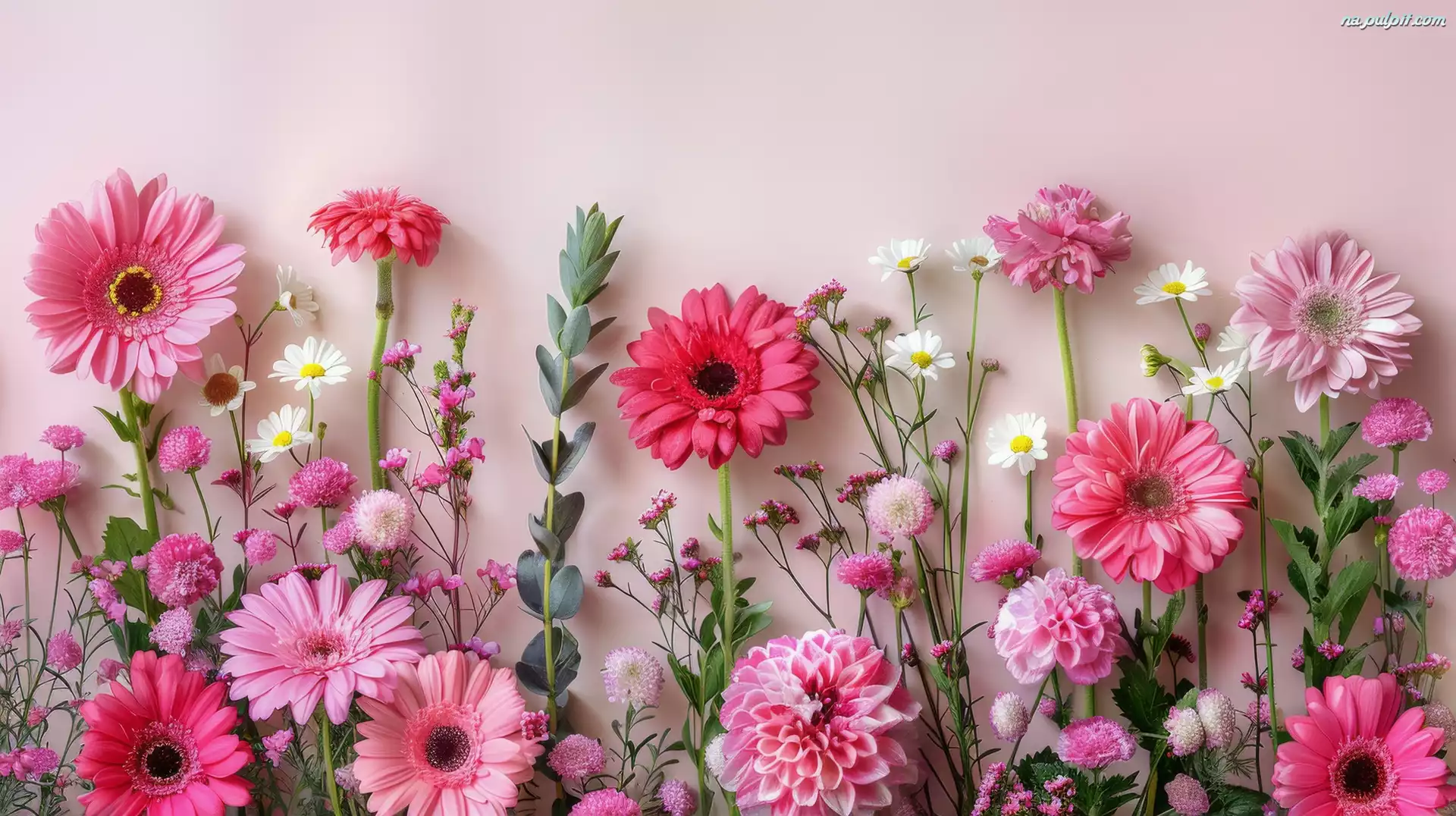 Tło, Gerbery, Kwiaty, Różowe, Białe, Małe, Dalie Na Pulpit