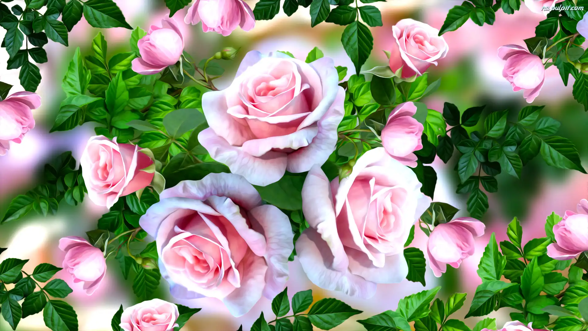 Różowe, Listki, Grafika, Rozwinięte, Kwiaty, Róże Na Pulpit