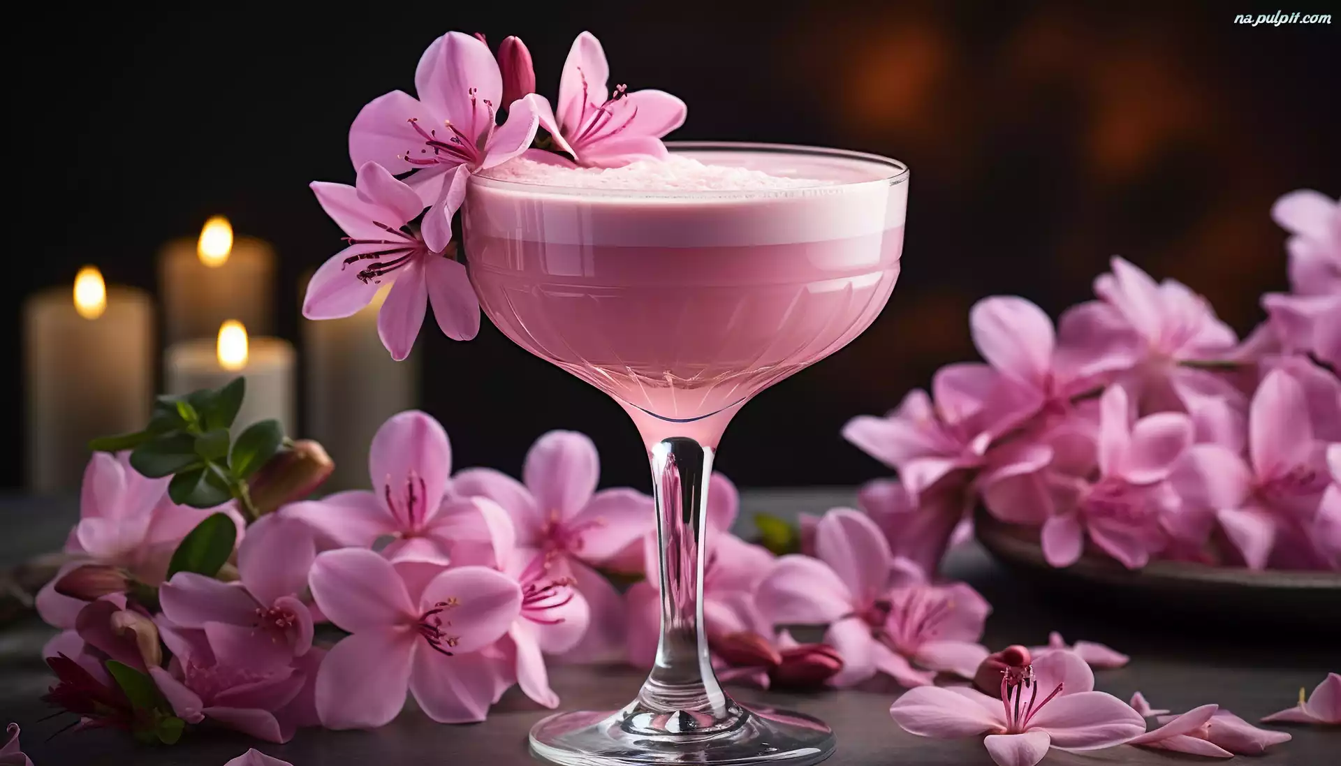 Drink, Różowy koktajl, Różowe, Kieliszek, Kwiaty