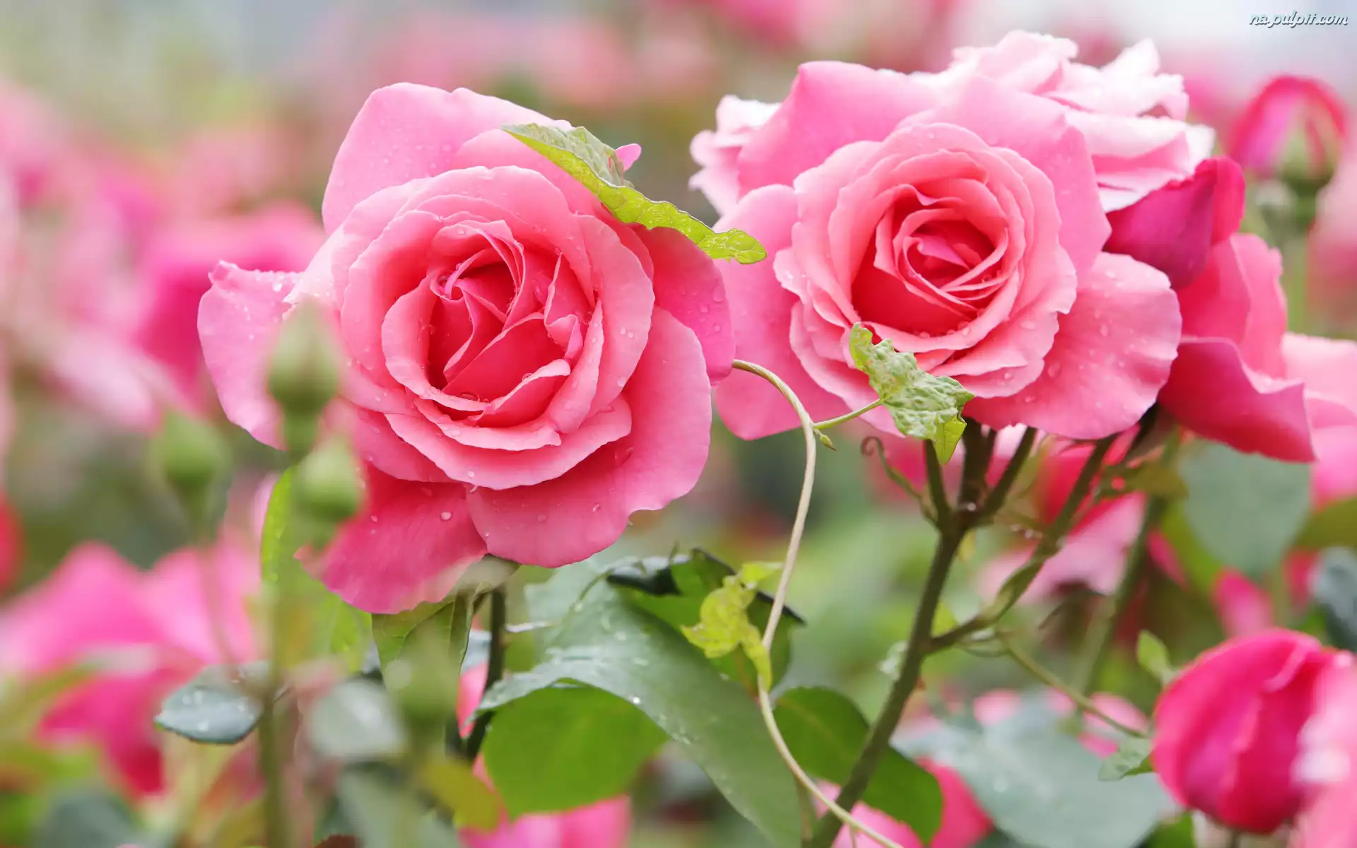 Kwiaty, Dwie, Róże, Różowe Na Pulpit