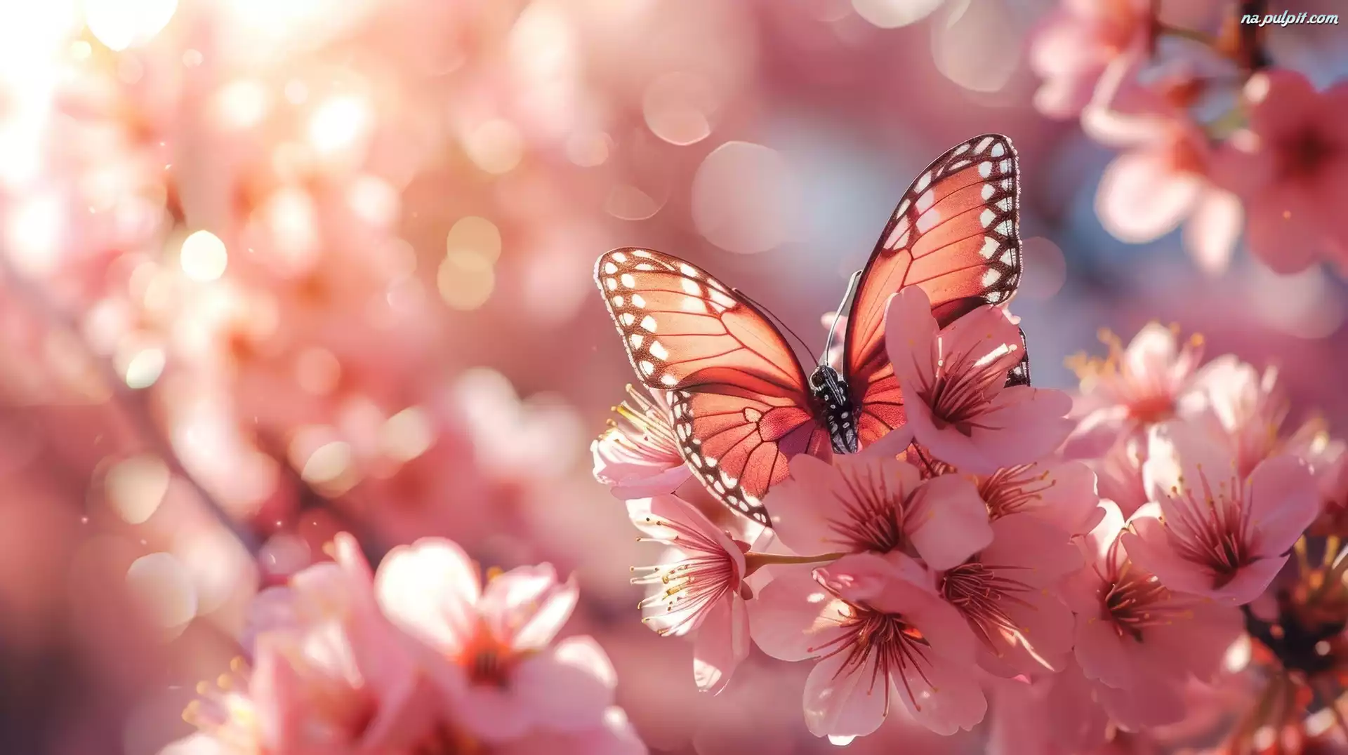 Motyl, Różowe, Kwiaty, Grafika, Różowy Na Pulpit