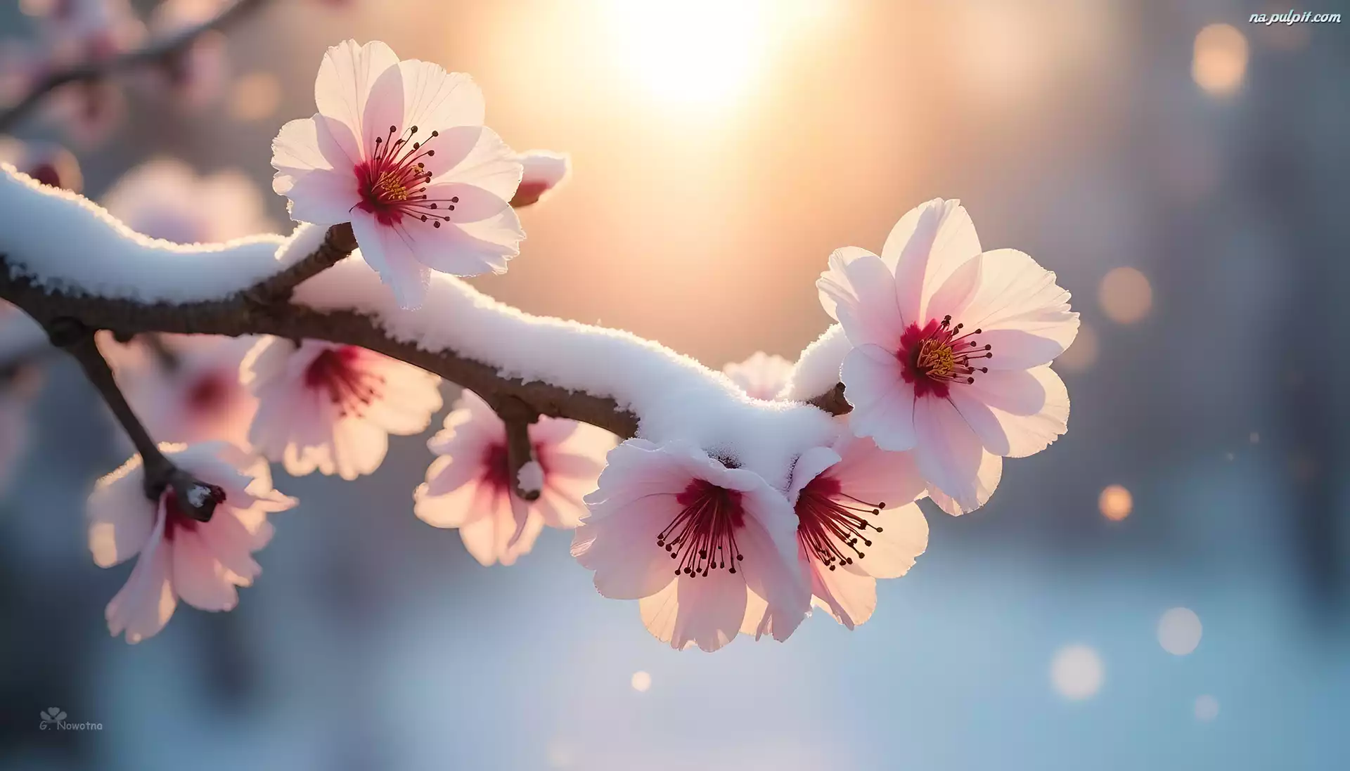 Ośnieżona, Różowe, Kwiaty, Gałązka, Wiśni Na Pulpit