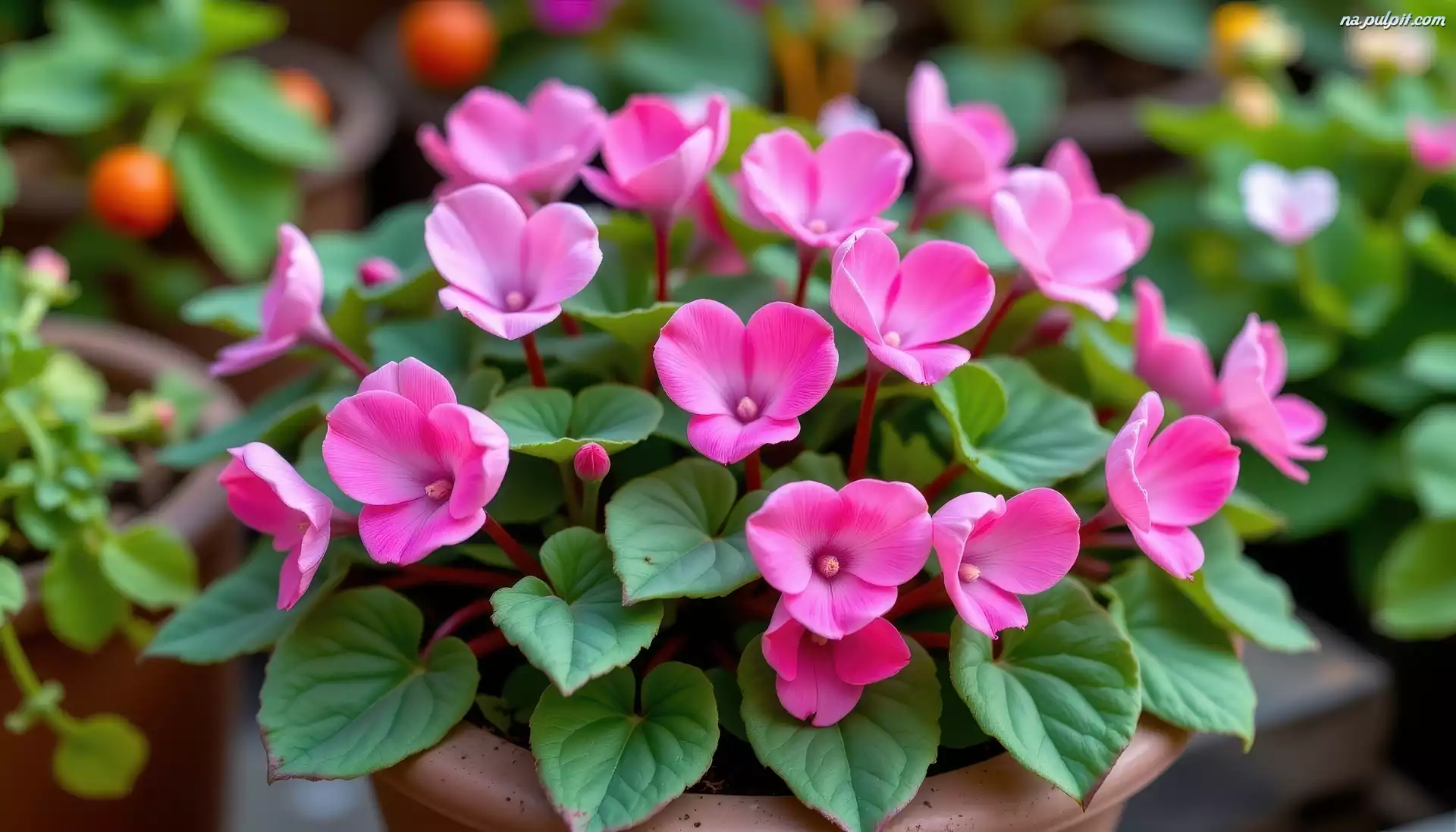 Listki, Różowe, Kwiaty, Donica, Zielone Na Pulpit