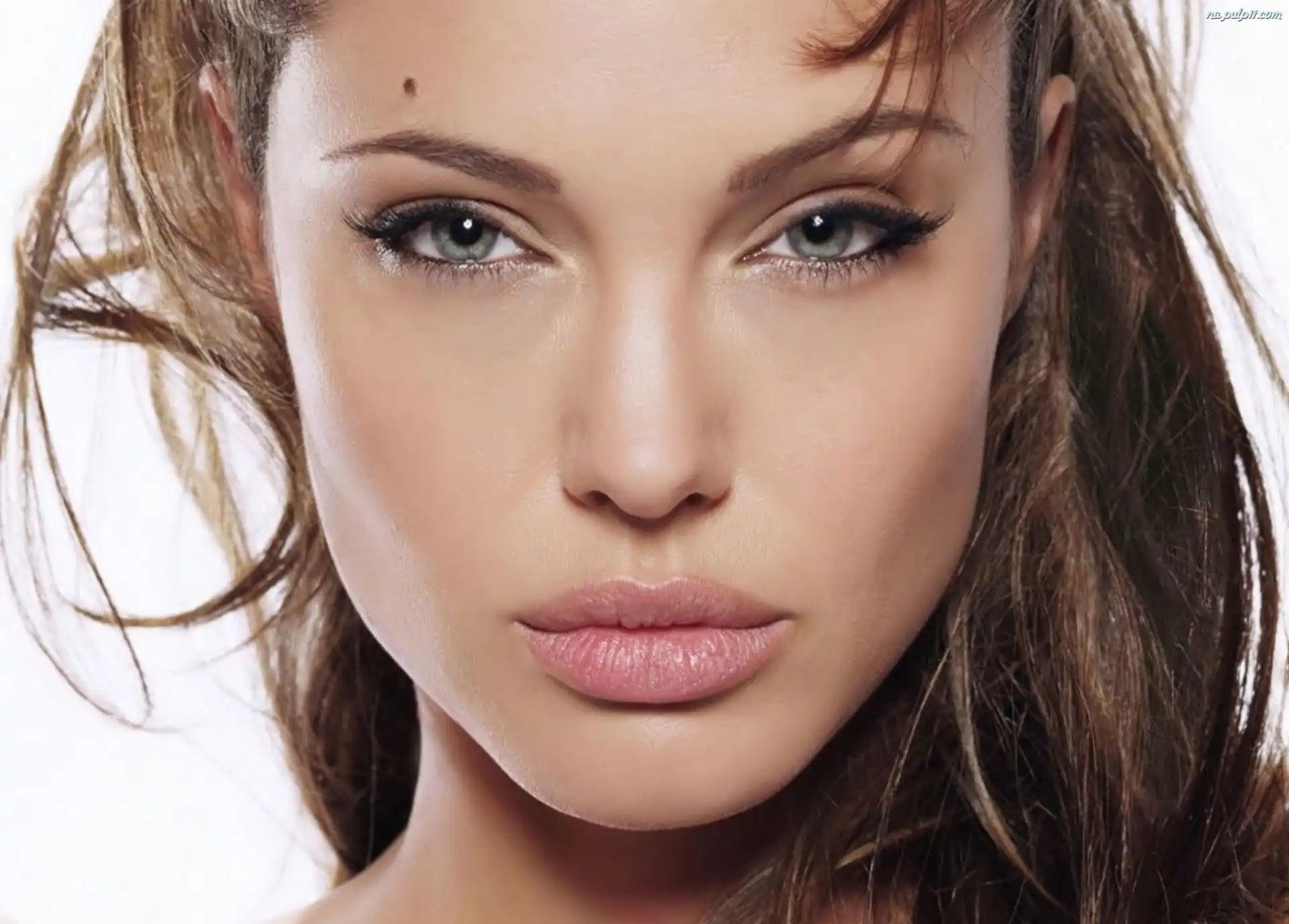 różowe usta, Angelina Jolie, niebieskie oczy Na Pulpit
