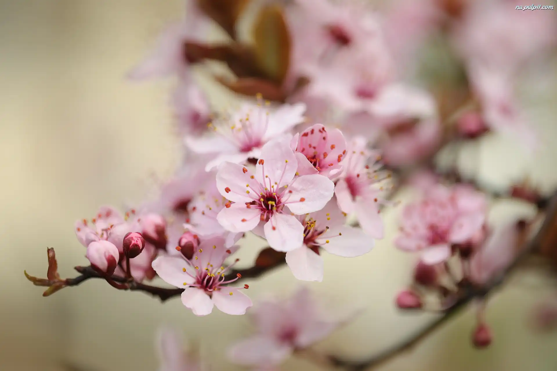 Różowe, Drzewo owocowe, Gałązka, Okwiecona, Kwiaty Na Pulpit