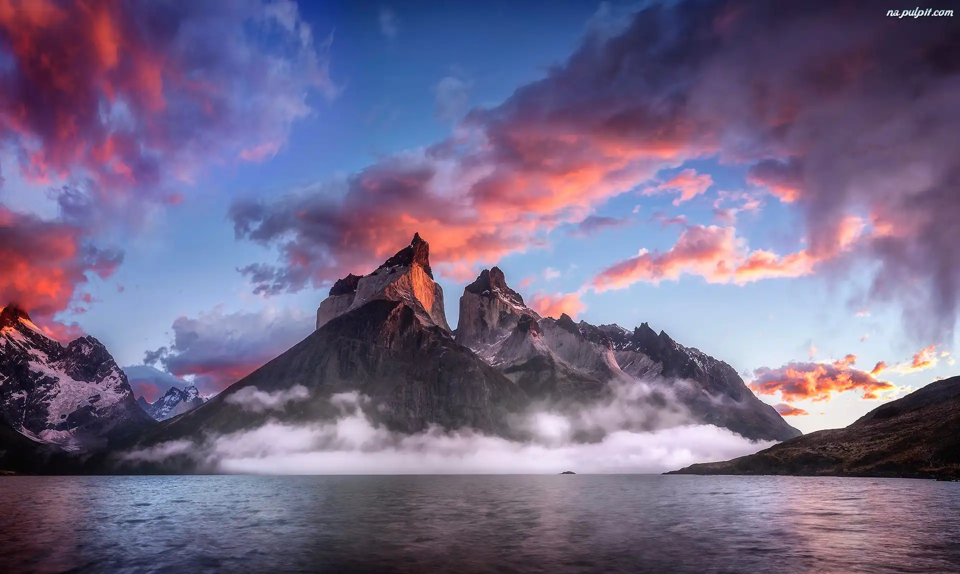 Patagonia, Różowe, Obłoki, Jezioro, Ameryka południowa, Góry Na Pulpit