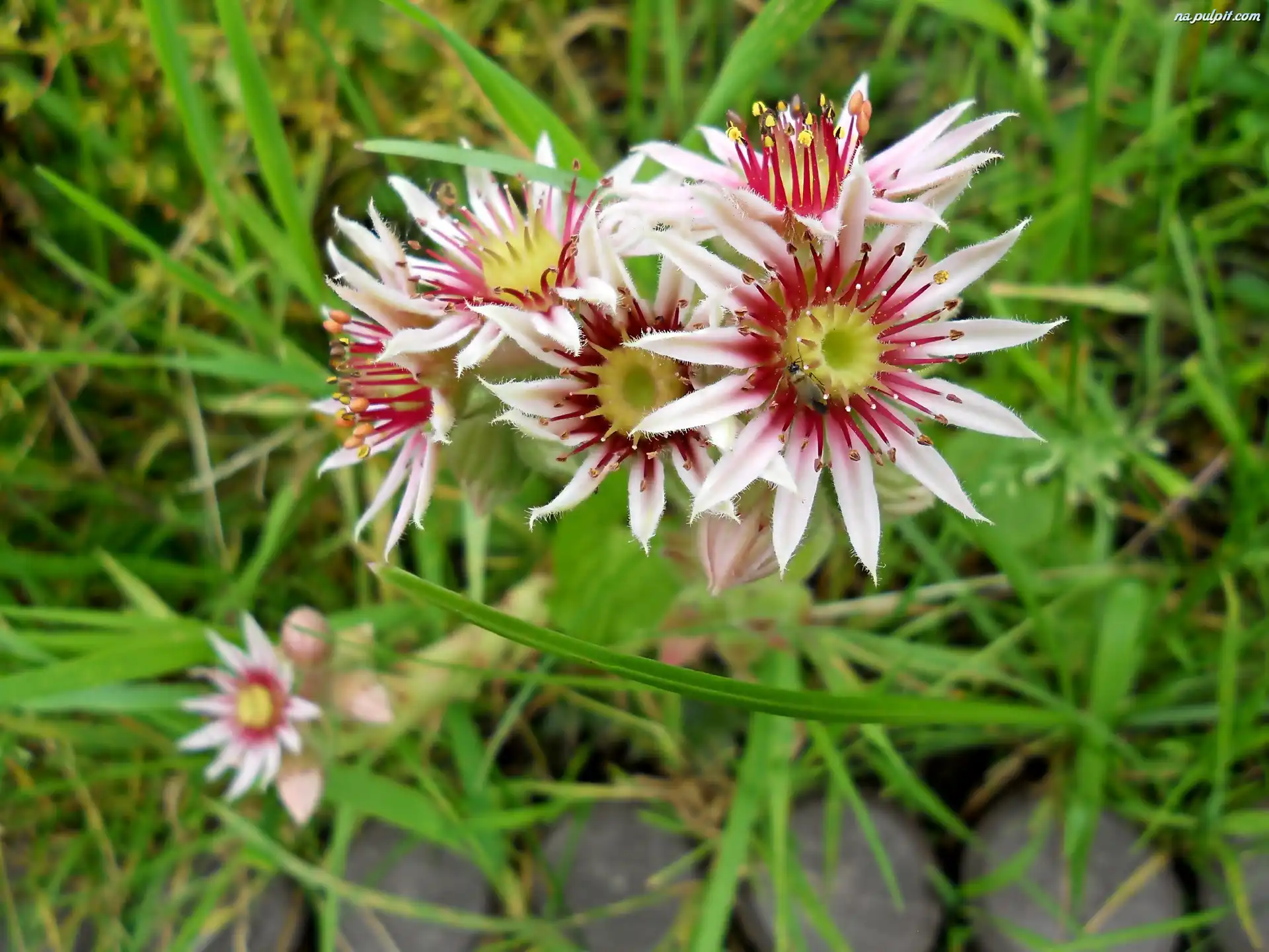Różowe, Środek, Robaczek, Kwiaty, Skalniak, Żółty Na Pulpit