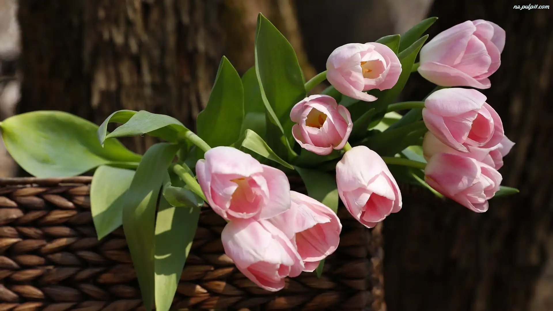 Tło, Różowe, Rozmyte, Bukiet, Tulipany, Kwiaty, Koszyk