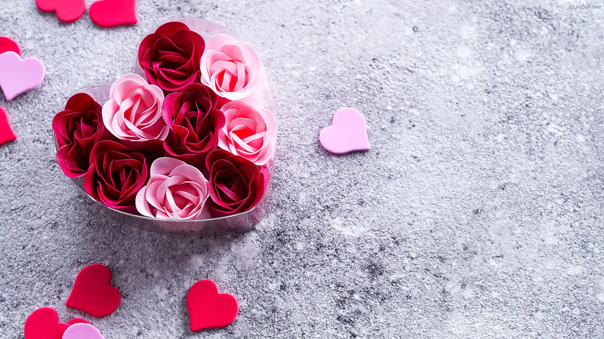 Tło, Różowe, Szare, Serca, Róże, Czerwone, Pudełko Na Pulpit