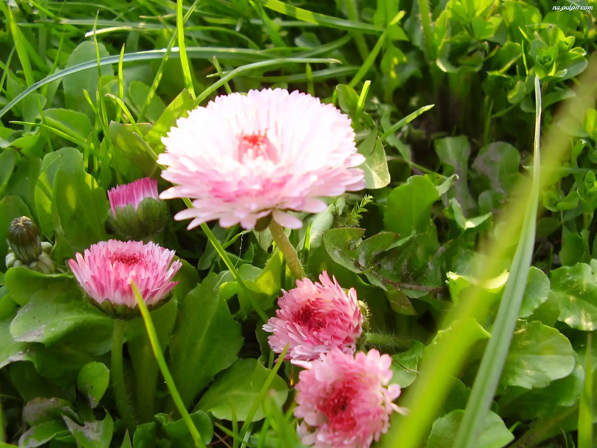 trawa, różowe, kwiaty Na Pulpit