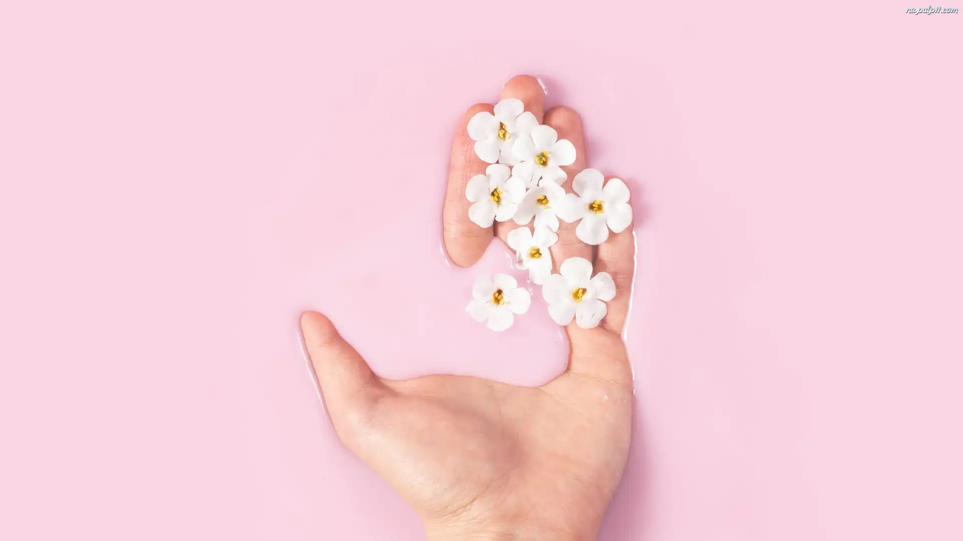 Różowy, Kwiaty, Ręka, Płyn Na Pulpit