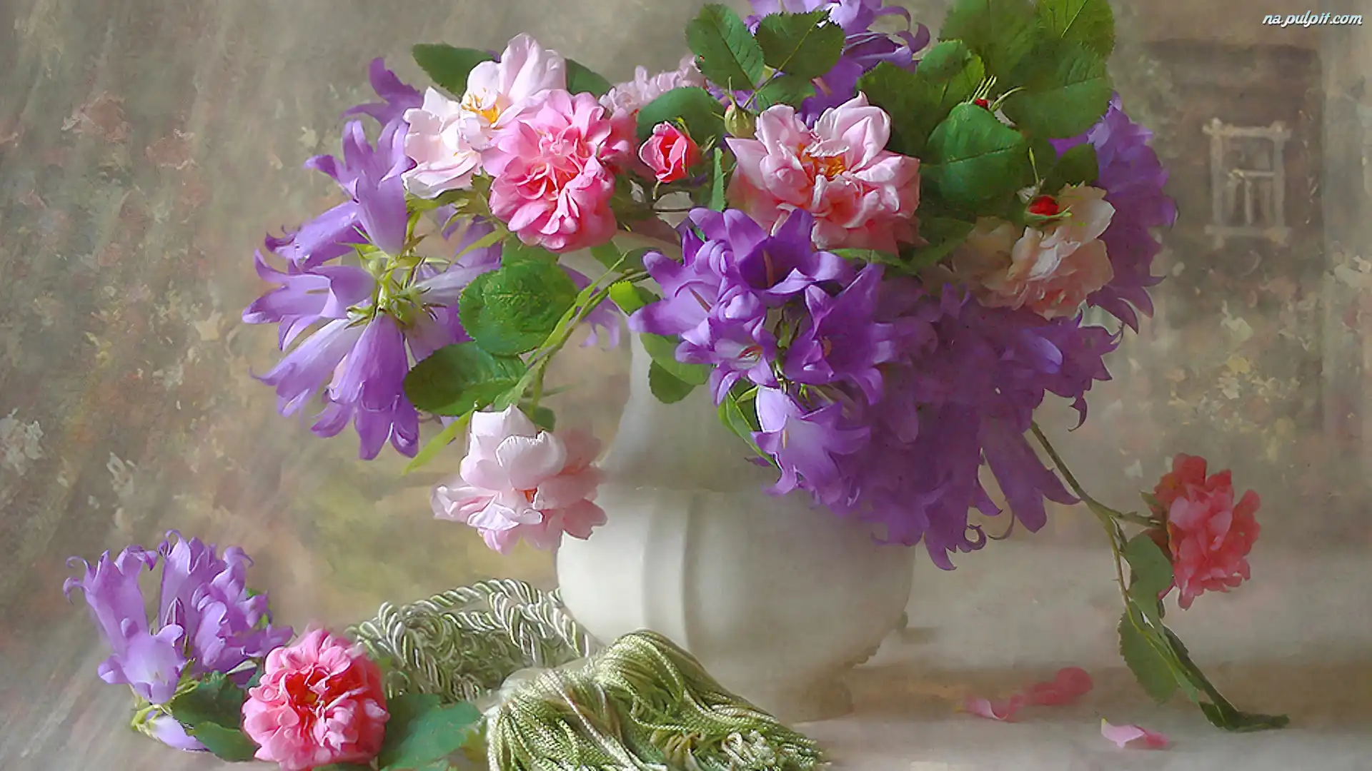 Różowych, Biały, Dzban, Fioletowych, Bukiet, Kwiatów