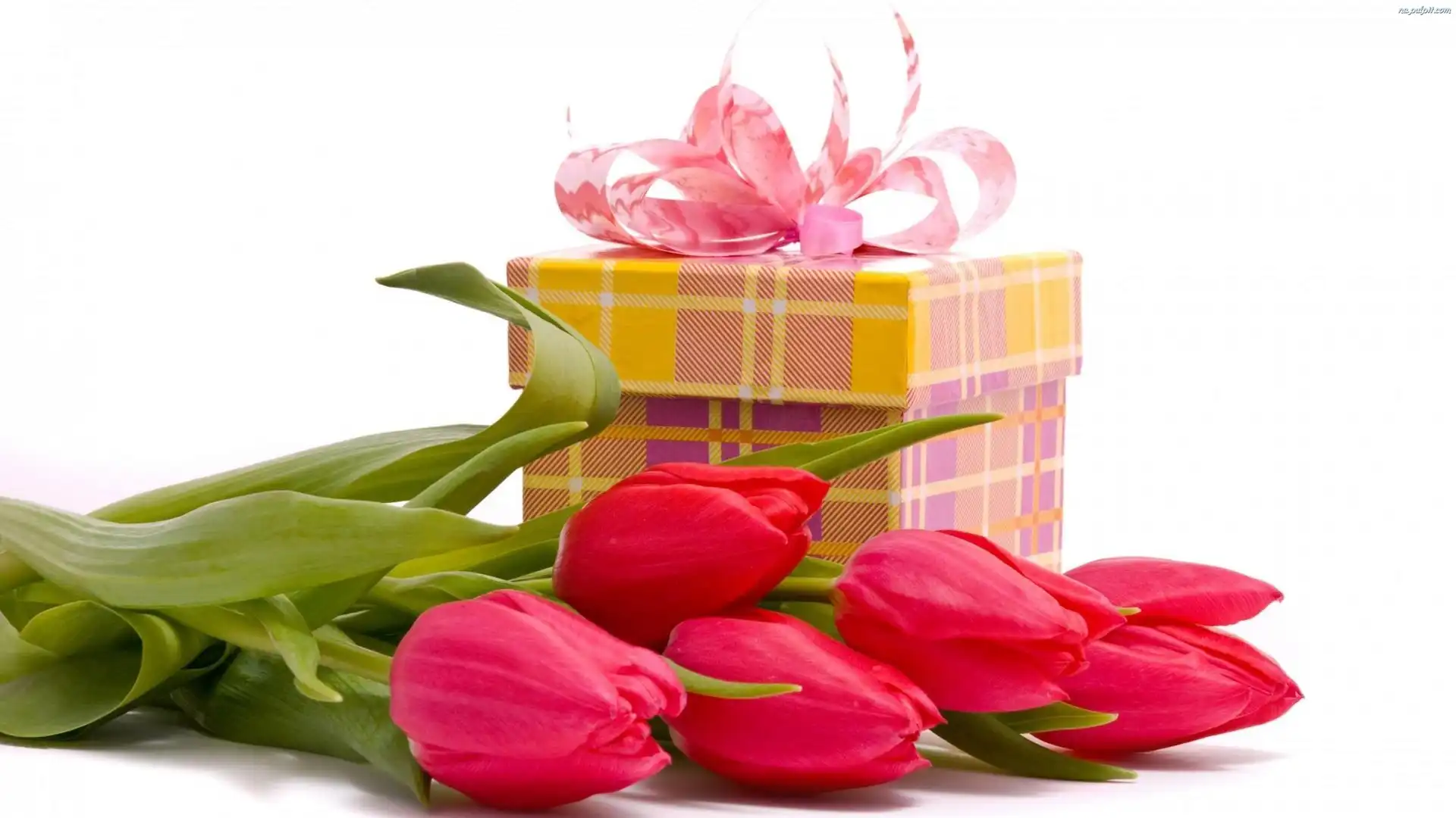 Różowych, Różowa, Wstążka, Tulipanów, Bukiet, Prezent Na Pulpit