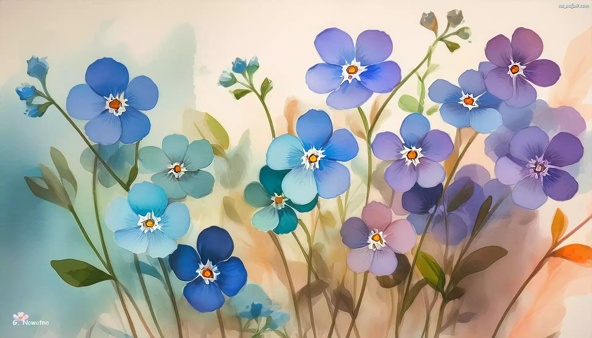 Tło, Fioletowe, Kwiaty, Rozświetlone, Niebieskie, Grafika