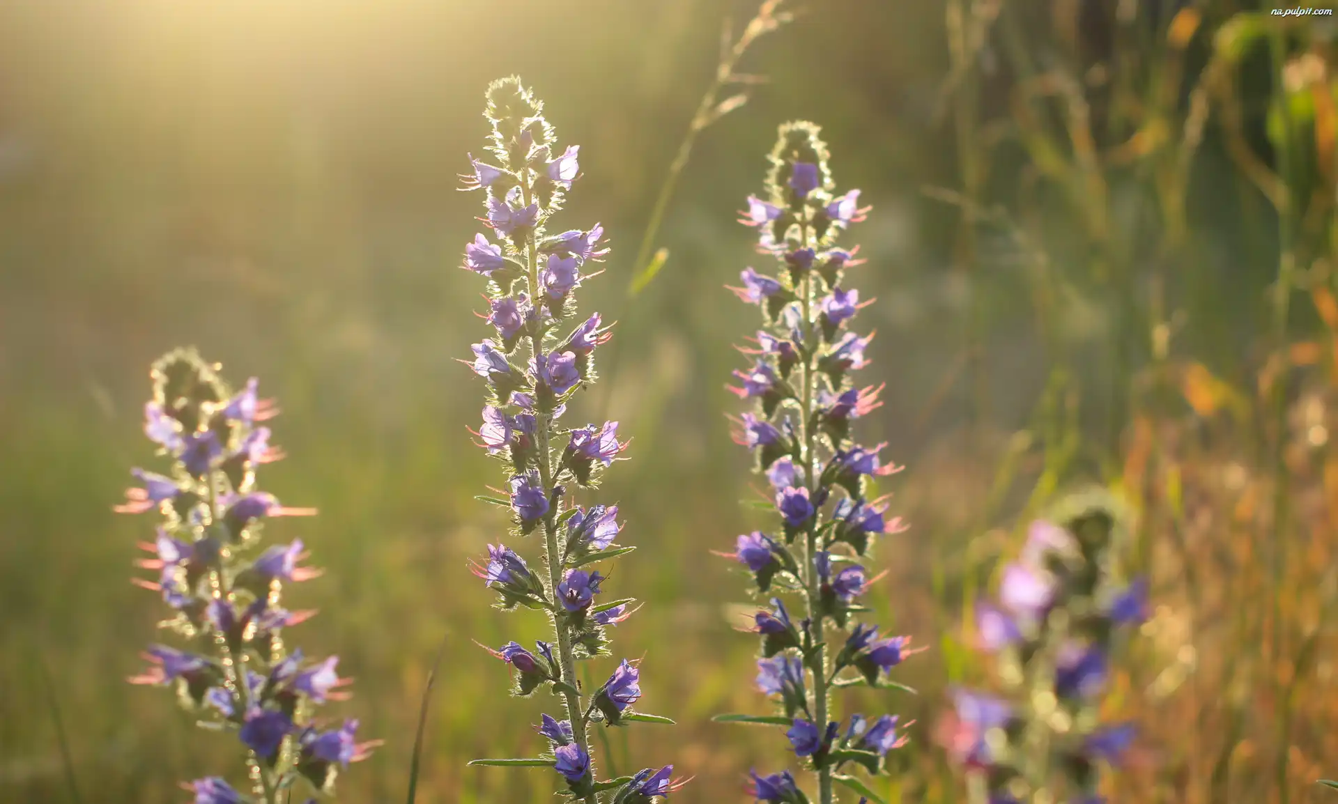 Niebieskie, Kwiaty, Polne, Rozświetlone