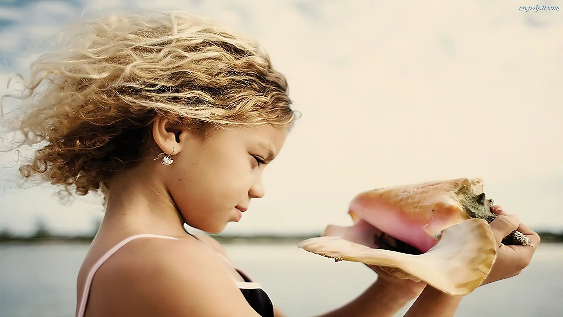 Rozwiane Włosy, Muszla, Dziewczynka, Dłonie Na Pulpit