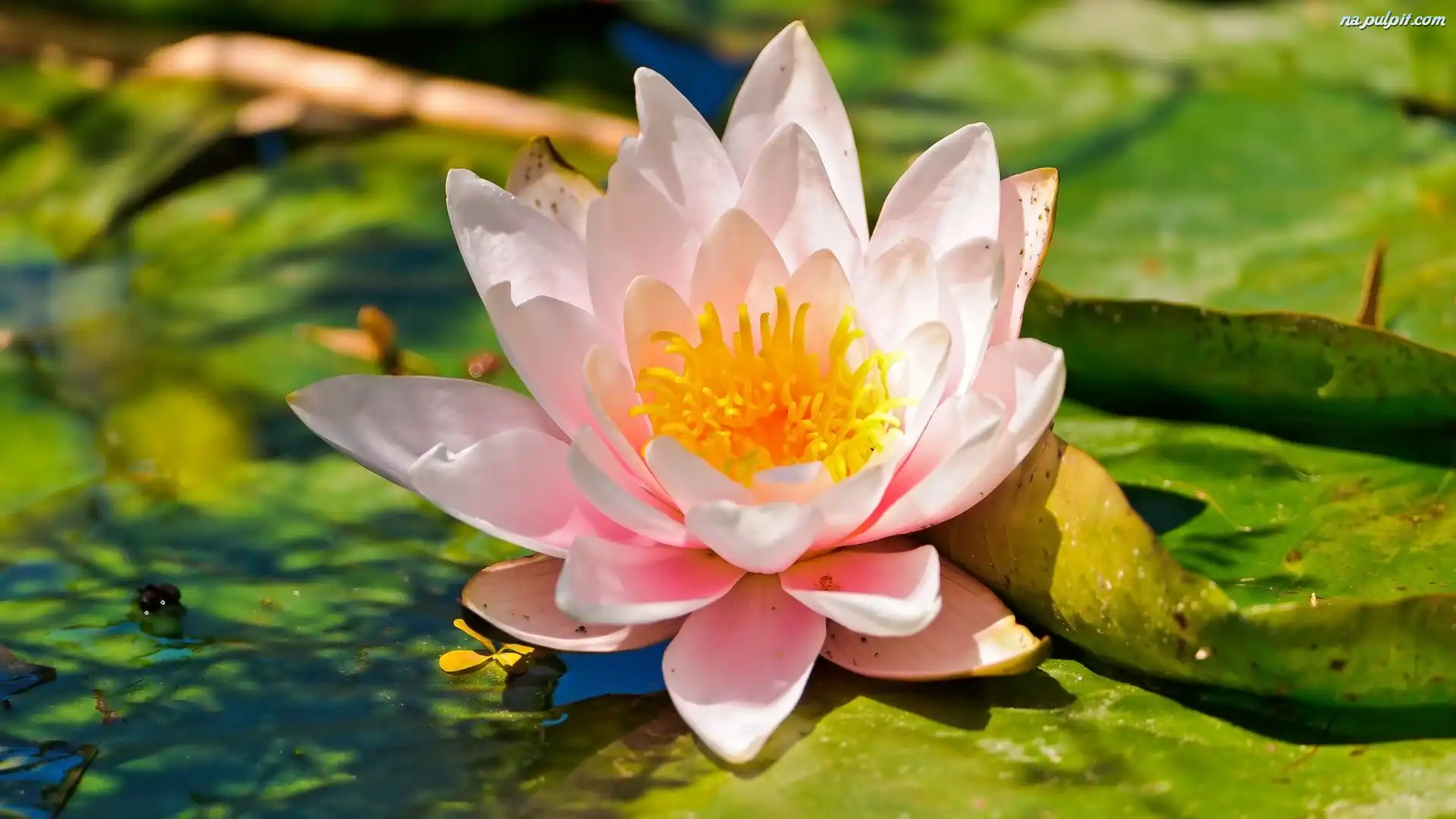Różowa, Rozwinięta, Lilia wodna, Liście Na Pulpit