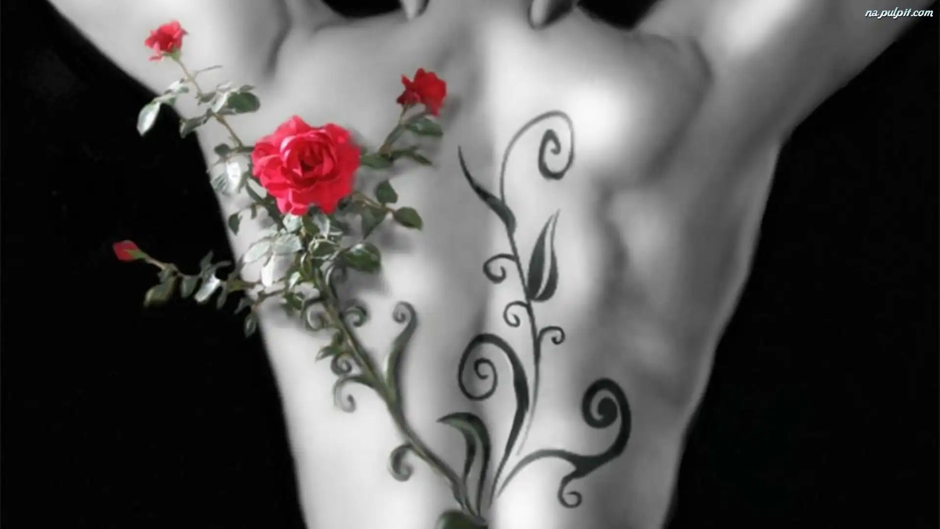 Róży, Tatuaż, Plecy, Gałązka Na Pulpit
