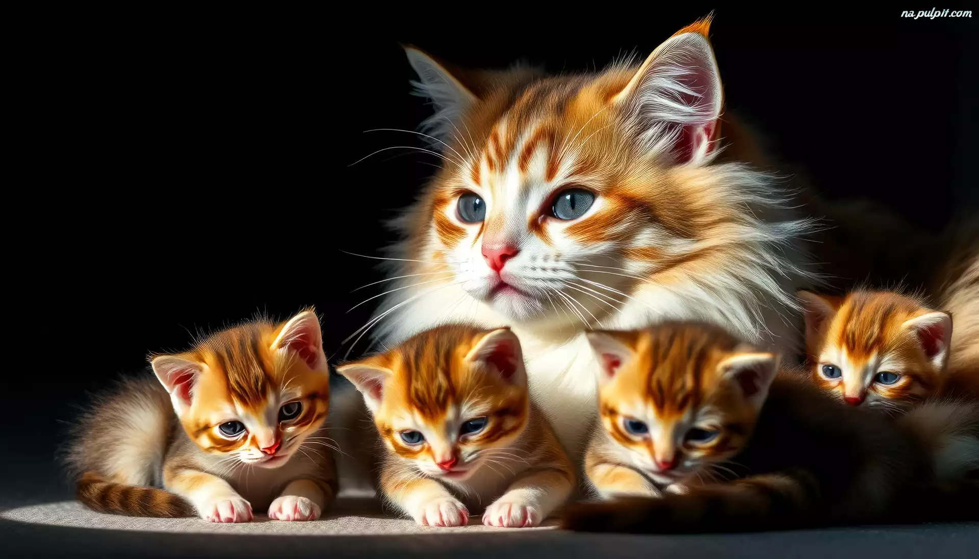 Kot, Rude, Kocięta, Grafika AI Na Pulpit