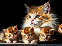Kot, Rude, Kocięta, Grafika AI