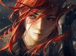 Ręka, Rudowłosa, Dziewczyna, Grafika, Twarz
