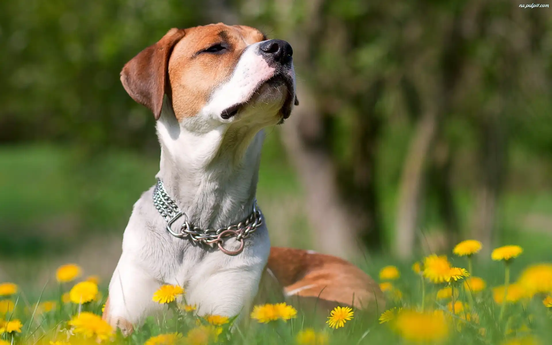 Rudy, Żółte, Mlecze, Pies, Biało, Łąka Na Pulpit