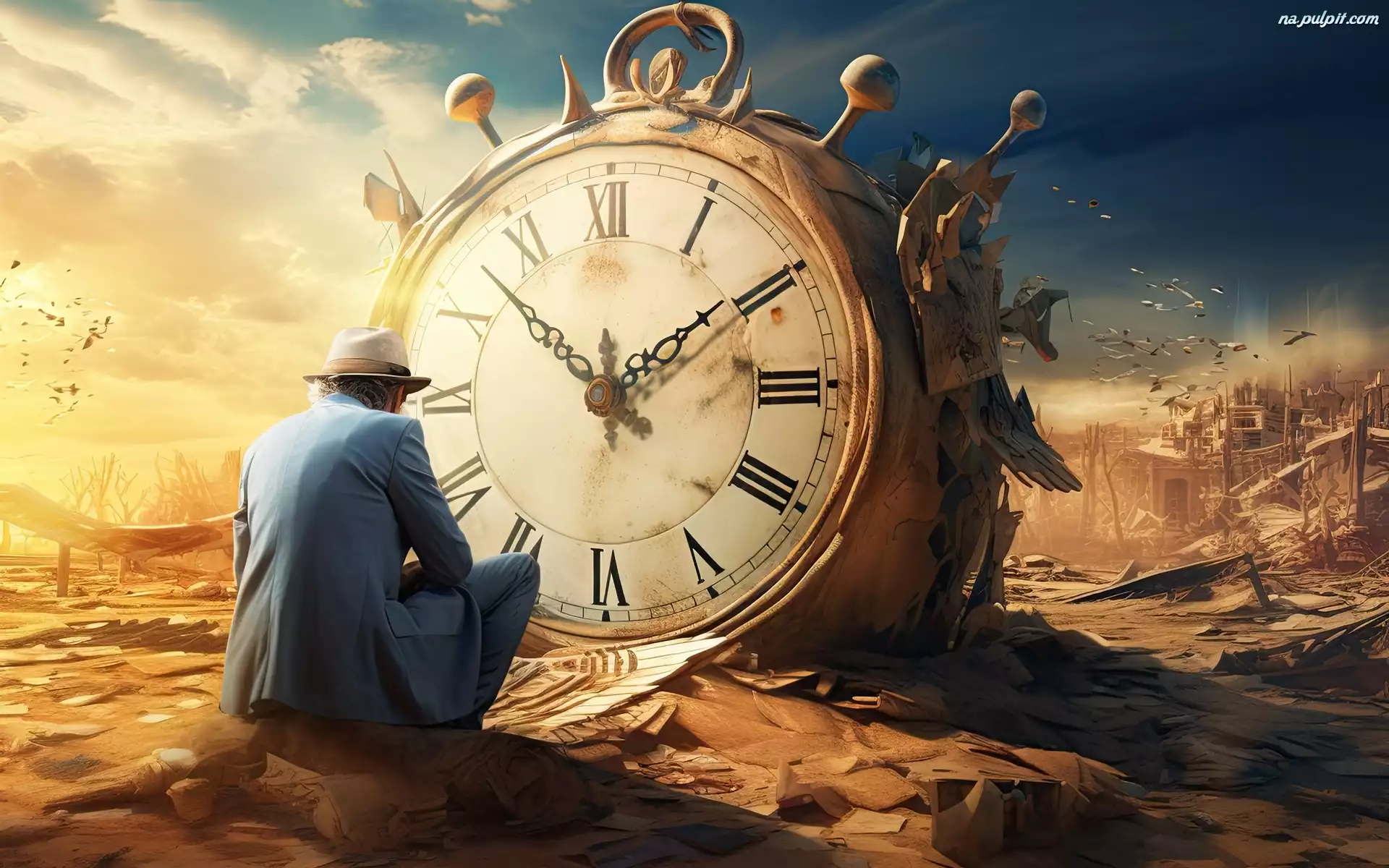 Grafika, Zegar, Mężczyzna, Ruiny Na Pulpit