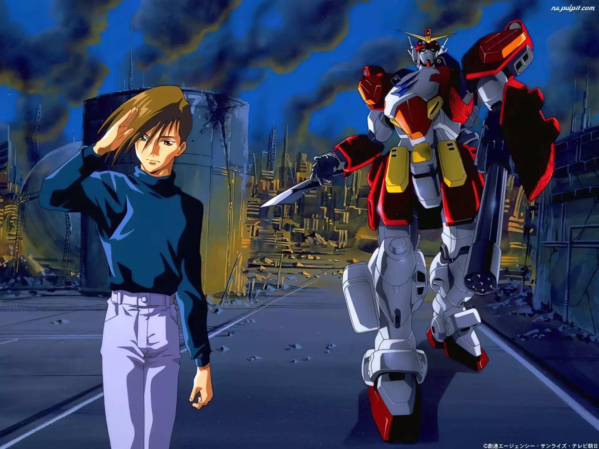 ruiny, miasto, facet, Gundam Wing, robot Na Pulpit