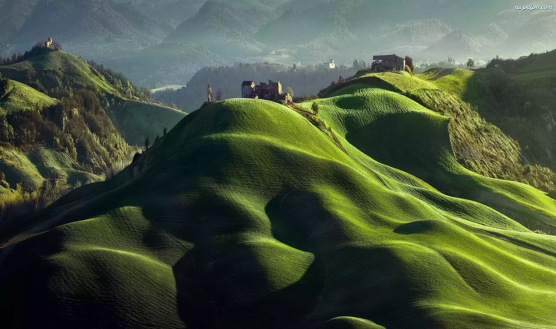 Ruiny, Wzgórza, Zielone, Budowle Na Pulpit