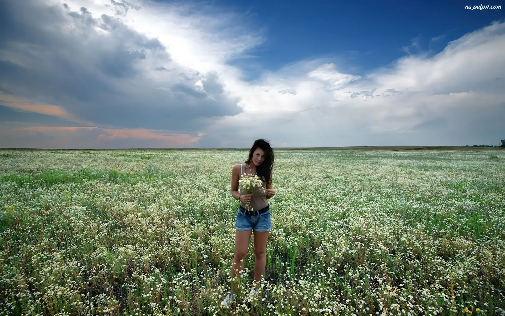 Rumianek, Pole, Kobieta, Bukiet Na Pulpit