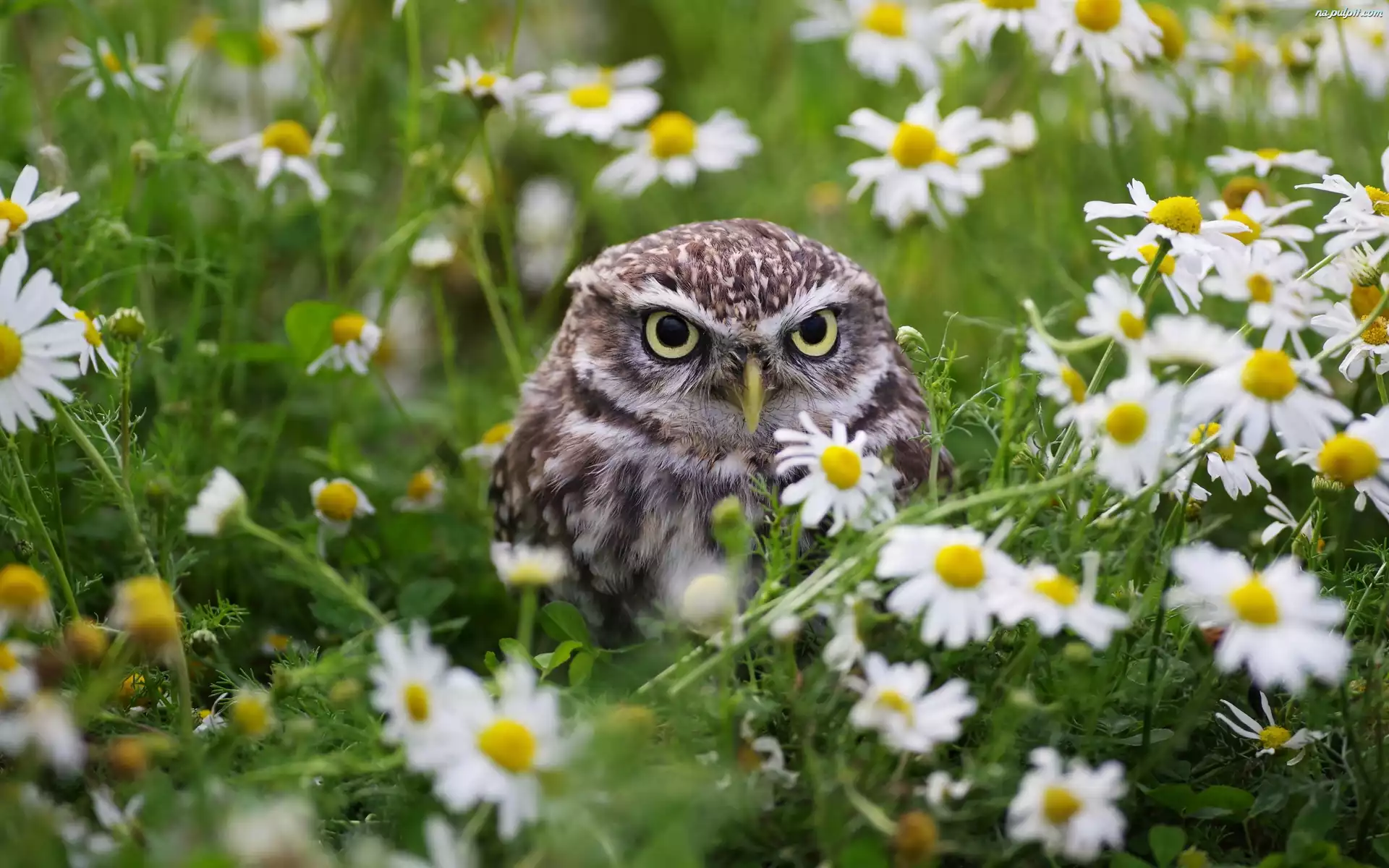 Rumianek, Sowa Pójdźka, Ptak, Kwiaty Na Pulpit