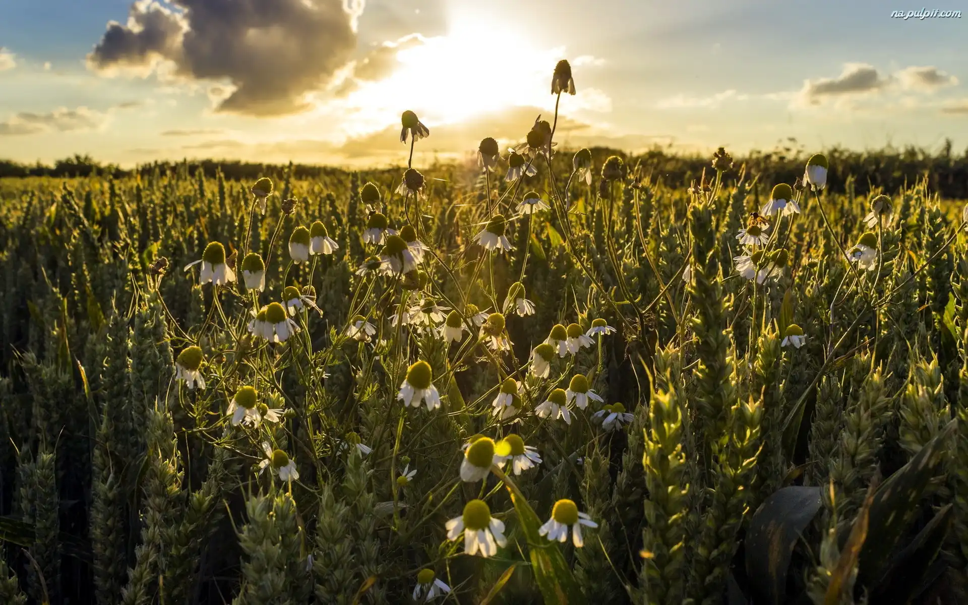 Rumianki, Słońca, Zachód, Pole